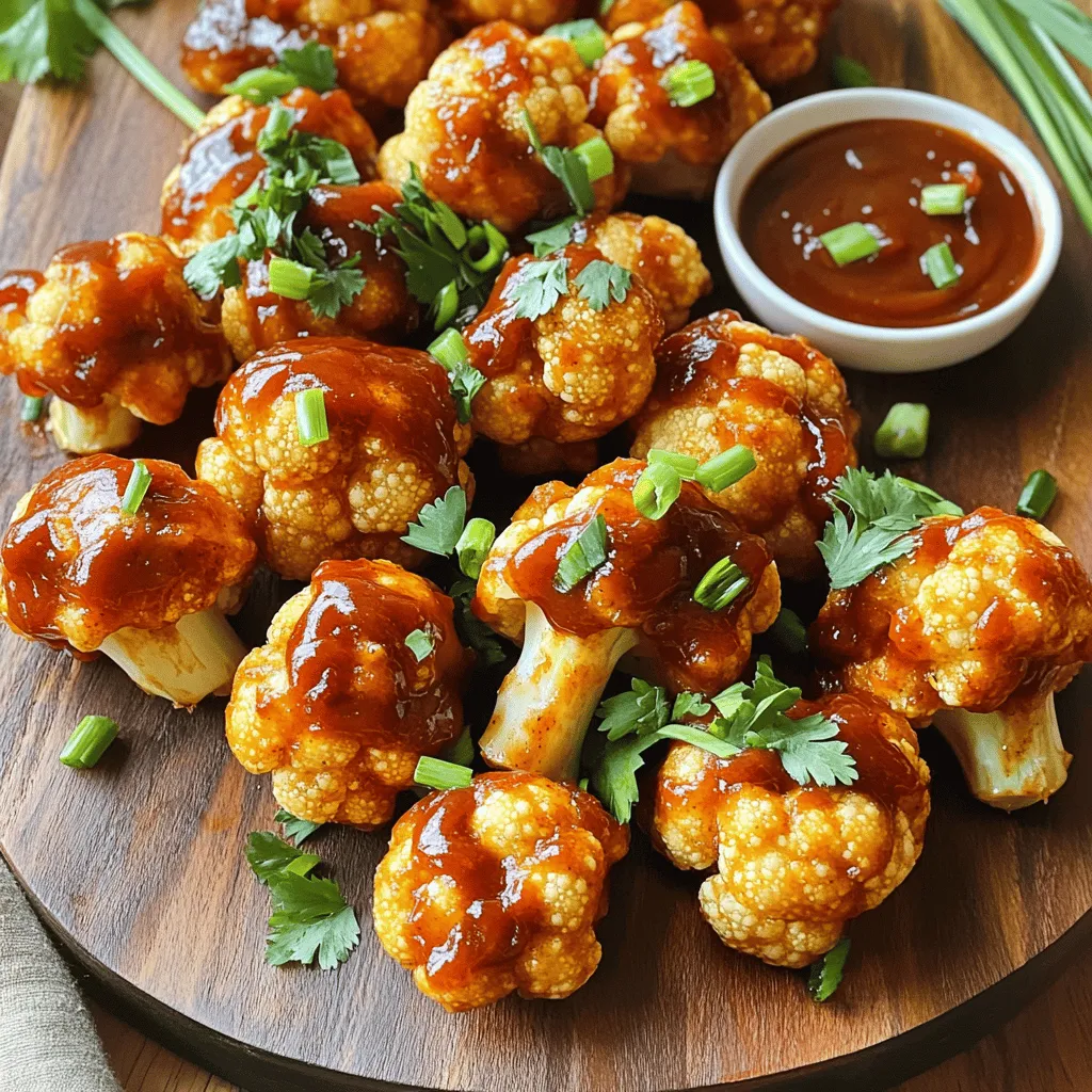 - Medium head of cauliflower - Optional garnishes: Fresh parsley, chopped green onions - 1 cup all-purpose flour (or gluten-free option) - 1 teaspoon garlic powder - 1 teaspoon onion powder - 1 teaspoon smoked paprika - ½ teaspoon salt - ½ teaspoon black pepper - 1 cup water - 1 cup BBQ sauce (your choice) - Cooking spray or olive oil for misting The fresh produce is key to this dish. Cauliflower provides a great base. You can use fresh parsley and green onions for a bright touch when serving. Next, dry ingredients add flavor and texture. All-purpose flour helps create a crispy coating. You can switch to gluten-free flour if needed. Garlic powder and onion powder bring a savory kick. Smoked paprika adds depth. Salt and black pepper round out the taste. For wet ingredients, water forms the batter. Choose your favorite BBQ sauce for the finishing touch. A light mist of cooking spray or olive oil helps crisp the wings in the air fryer. These ingredients create a fun and tasty dish that everyone will enjoy! 1. Preheat your air fryer to 400°F (200°C) for about 5 minutes. This step is key for a crisp finish. 2. Make the batter. In a mixing bowl, whisk together: - 1 cup all-purpose flour (or gluten-free flour) - 1 teaspoon garlic powder - 1 teaspoon onion powder - 1 teaspoon smoked paprika - ½ teaspoon salt - ½ teaspoon black pepper Gradually add 1 cup of water. Stir until you have a smooth batter. It should be thick but pourable. 3. Coat the cauliflower florets. Dip each piece into the batter. Make sure they are well-coated. Allow any extra batter to drip off. Place them in the air fryer basket in one layer. 4. Place the coated florets in the air fryer. If your air fryer is small, cook in batches. 5. Mist for crispiness. Lightly spray the florets with cooking spray. This step helps them become golden. 6. Set cooking time. Cook the cauliflower wings for 12-15 minutes. Shake the basket halfway through. This ensures even cooking for all pieces. 7. Warm the BBQ sauce while the wings cook. Use a small saucepan over low heat. This makes the sauce easy to coat. 8. Toss the wings in the sauce. Once they are crispy, take them out and place them in a bowl. Pour the warm BBQ sauce over them. Toss until each wing is well-coated. 9. Return to the air fryer. Put the sauced wings back in the air fryer. Cook for an additional 3 minutes. This helps the sauce set on the wings. 10. Cool slightly before serving. Let the wings rest for a minute. They are now ready to enjoy! To get that perfect crunch, coating is key. Make sure to coat each cauliflower piece well. The batter should be thick enough to stick but not too thick. After coating, mist the florets with cooking spray. This helps them crisp up nicely in the air fryer. Cooking in batches also matters. If you fill the basket too much, the wings will steam instead of fry. Frying in small batches helps each piece cook evenly. This way, you get that golden, crispy finish you want. When serving, presentation makes a big difference. Arrange the BBQ cauliflower wings on a platter. You can line the platter with fresh parsley for color. This adds a nice touch to your dish. Don’t forget the dips! A small bowl of extra BBQ sauce is perfect for dipping. You can also pair these wings with fresh veggies or a crunchy salad. One big mistake is overcrowding the air fryer. If the basket is too full, the air won’t circulate well. This leads to soggy wings instead of crispy ones. Another mistake is not shaking the basket during cooking. Shaking the basket halfway through helps all sides cook evenly. This simple step can make a huge difference in texture. {{image_2}} You can switch up the BBQ sauce for different flavors. Homemade sauce gives you control over taste. You can adjust sweetness or spice to your liking. Store-bought options are quick and easy. Look for brands with natural ingredients for a healthier choice. Want a spicy kick? Add hot sauce to your BBQ mix. For sweetness, try honey or maple syrup. You can even mix in spices like cayenne or chipotle for depth. Cauliflower wings are popular, but you can try cauliflower leaves too. They provide a different texture and taste. Simply coat and air fry them the same way. Other veggies work well too! Try broccoli, zucchini, or bell peppers. Just cut them into bite-sized pieces. They will crisp up nicely in the air fryer. If you need gluten-free options, swap all-purpose flour for almond or coconut flour. These options work well for the batter. Just keep an eye on the texture. For vegan modifications, use a plant-based BBQ sauce. You can also replace the flour with chickpea flour for added protein. These changes make the dish friendly for all diets. To store leftover cauliflower wings, let them cool first. Place them in an airtight container. Keep them in the fridge for up to three days. When you're ready to eat, you want to reheat them for the best taste. To maintain crispiness, preheat your air fryer to 350°F (175°C). Place the wings in the basket in a single layer. Heat them for about 5-7 minutes. This will make them crispy again. You can also use a regular oven at 375°F (190°C). If you want to freeze prepared wings, first let them cool completely. Then, place them on a baking sheet in a single layer. Freeze them for about one hour. Once frozen, transfer the wings to a freezer bag or container. To thaw and reheat, take them out of the freezer and place them in the fridge overnight. When ready, preheat your air fryer to 350°F (175°C). Cook them for about 7-10 minutes until they are hot and crispy again. Enjoy your delicious wings! You should air fry cauliflower wings for 12-15 minutes. Shake the basket halfway through. This helps them cook evenly and get crispy. Yes, you can use frozen cauliflower. Just thaw it first and pat it dry. This helps the batter stick better. To reheat, place the wings back in the air fryer. Heat them at 350°F for about 5-7 minutes. This keeps them crispy and tasty. To spice them up, 