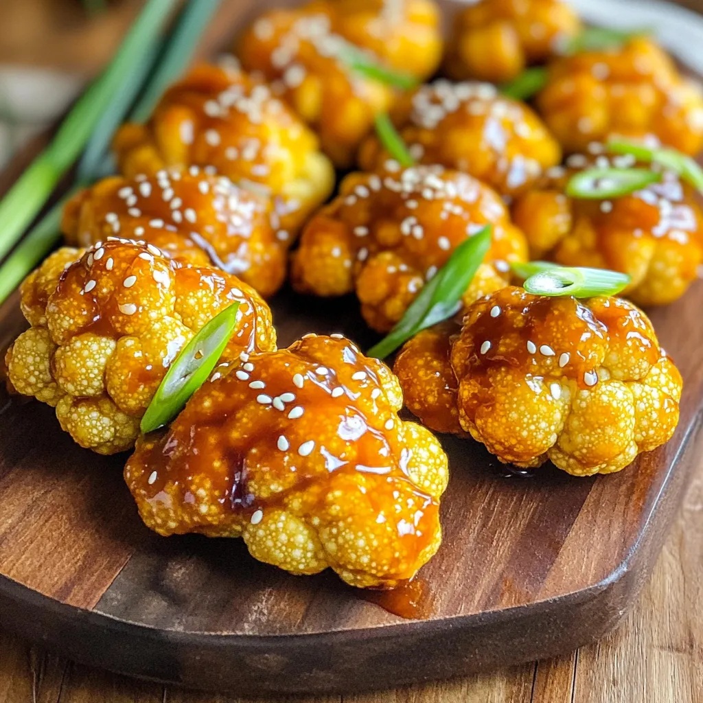 Cauliflower and Flour Requirements - 1 large head of cauliflower, cut into bite-sized florets - 1/2 cup all-purpose flour (or gluten-free flour) Cauliflower is the star of this dish. Choose a large head for more florets. Cutting them into bite-sized pieces ensures they cook evenly. The flour helps create a crispy batter. You can use gluten-free flour if you prefer. Seasoning Overview - 1/2 teaspoon garlic powder - 1/2 teaspoon onion powder - 1/4 teaspoon smoked paprika - 1/2 teaspoon salt - 1/2 teaspoon black pepper - 1/2 cup water The seasonings add depth to the flavor. Garlic powder and onion powder give that savory touch. Smoked paprika adds a nice, mild smokiness. Salt and black pepper enhance the overall taste. The water helps mix the dry ingredients into a smooth batter. Garnishing Elements - 1/2 cup teriyaki sauce (store-bought or homemade) - 2 tablespoons sesame seeds (for garnish) - 2 green onions, sliced (for garnish) Teriyaki sauce adds that sweet and savory shine. You can use store-bought for ease or make your own for a personal touch. Sesame seeds and green onions make the dish look pretty and add texture. Cutting and Washing Techniques Start by washing your cauliflower head under cold water. This step is key to removing dirt. Then, place it on a cutting board. Cut off the leaves and stem. Slice the cauliflower into bite-sized florets. Make sure they are all about the same size. This helps them cook evenly. Importance of Floret Size Floret size matters! Smaller pieces cook faster and become crispier. If the pieces are too big, they may not cook through. Aim for florets that are around 1 to 2 inches. This size gives a nice bite and holds the batter well. Mixing Techniques for Ideal Consistency In a large mixing bowl, add your flour, garlic powder, onion powder, smoked paprika, salt, and black pepper. Mix these dry ingredients well with a whisk. Then, slowly add water. Keep whisking until you form a smooth batter. It should be thick enough to coat the florets without dripping too much. Tips for Whisking Effectively Use a whisk or a fork to mix. Whisk in a circular motion to combine. If the batter feels too thick, add a little more water. If it’s too thin, sprinkle in more flour. The right consistency is key for a good coating. Preheating the Air Fryer Before you cook, preheat your air fryer to 375°F (190°C). Preheating helps to create a crispy texture. This step makes a big difference in the final result. Ideal Cooking Time and Temperature Place the battered florets in the air fryer. Cook them for about 12 to 15 minutes. Shake the basket halfway through cooking. This ensures that all sides get crispy and golden brown. Keep an eye on them to avoid burning. Tips for Achieving Crispiness For extra crispiness, avoid overcrowding the basket. Cook in batches if needed. A single layer allows hot air to circulate. This is what gives your cauliflower wings that perfect crunch. How to Avoid Sogginess To keep your cauliflower wings crispy, make sure to coat them well with batter. As you dip each floret, let excess batter drip off. This helps prevent a soggy texture. If you find them too wet, you can sprinkle a little extra flour before air frying. Best Practices for Air Fryer Usage Preheat your air fryer to 375°F (190°C) before adding the wings. This step helps them cook evenly. Arrange the florets in a single layer in the basket. Avoid overcrowding, as this can lead to steaming instead of frying. Shake the basket halfway through to ensure even crispiness. Recommended Seasonings to Add While garlic and onion powder work well, feel free to experiment! Adding a pinch of cayenne can give your wings a kick. Try a splash of soy sauce in the batter for extra depth. Pairing Suggestions These teriyaki cauliflower wings pair perfectly with rice or a fresh salad. If you want to elevate your meal, serve them alongside some steamed broccoli or snap peas for added crunch and nutrition. Presentation Ideas For a beautiful presentation, place the wings on a large platter. Drizzle some teriyaki sauce on top and sprinkle with sesame seeds and sliced green onions. This adds color and makes the dish look gourmet. Dip Recommendations To complement the wings, serve with a side of creamy ranch or spicy sriracha mayo. These dips add a nice contrast to the sweet teriyaki flavor. You can also try a zesty lime or lemon dipping sauce for a refreshing twist. {{image_2}} Spicy Teriyaki Option If you like heat, add sriracha or chili paste to your teriyaki sauce. Start with one tablespoon. Taste the sauce and adjust for more spice if needed. This kick adds a delicious twist to your cauliflower wings. Alternative Sauces and Marinades You can swap teriyaki for other sauces. Try barbecue sauce for a smoky taste. Buffalo sauce gives a tangy flavor. For a sweet touch, use honey mustard. Each option brings a unique flair to the dish. Baking Instructions To bake, preheat your oven to 425°F (220°C). Place the coated cauliflower on a baking sheet lined with parchment paper. Bake for 20-25 minutes, flipping halfway. This method gives crispy wings without the air fryer. Pan-Frying Alternatives For pan-frying, add oil to a skillet over medium heat. Fry the coated florets for about 4-5 minutes on each side until golden brown. This method creates a crunchy texture, but watch closely to prevent burning. Gluten-Free Modifications Use gluten-free flour instead of all-purpose flour. This swap keeps the dish gluten-free. Make sure your teriyaki sauce is also gluten-free. Check the label for safe ingredients. Vegan Considerations This recipe is already vegan-friendly. Just ensure your teriyaki sauce contains no animal products. For a fun twist, serve with a vegan ranch dip on the side. It pairs nicely with the wings! - Refrigeration Guidelines: Store your leftover teriyaki cauliflower wings in an airtight container. Keep them in the fridge for up to four days. This helps maintain their flavor and texture. - Freezing Instructions: 