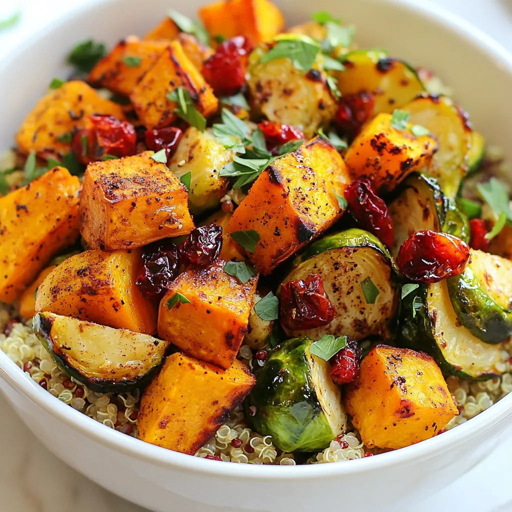 A colorful and nutritious bowl featuring roasted vegetables and quinoa, perfect for autumn.