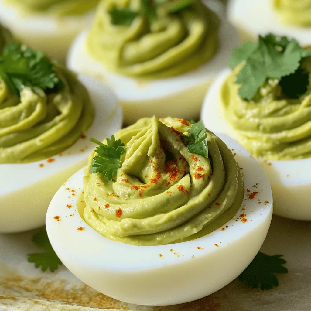 To add a kick to your avocado deviled eggs, try the spicy version. Simply mix in diced jalapeños or a dash of hot sauce to the filling. This adds heat and depth. You can adjust the spice level to your taste. I love how the creamy avocado balances the spice. It makes each bite exciting and full of flavor.