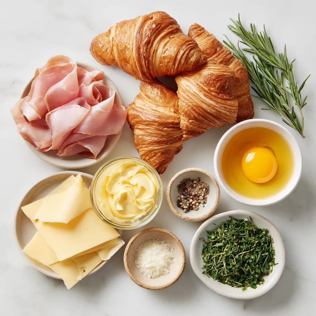 These ingredients create a tasty treat. You will need fresh croissants, ham, and Swiss cheese. The mustard adds a nice zing. The butter gives a rich flavor and helps the croissants shine. Fresh rosemary adds a lovely touch. Make sure to have salt and pepper to taste. The egg wash gives a beautiful finish during baking. Each ingredient plays a role in making this dish special.