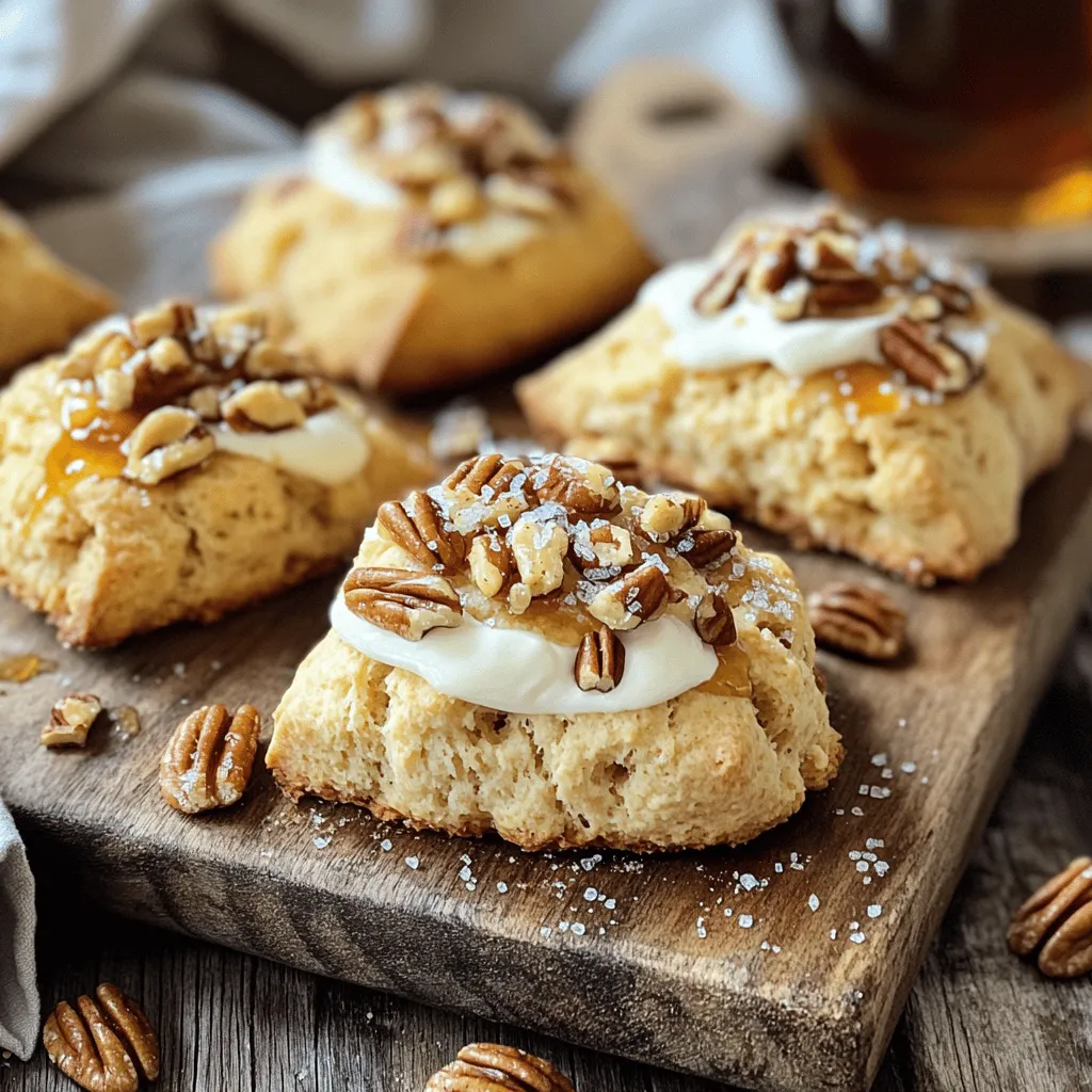 - 2 cups all-purpose flour - 1/2 cup brown sugar, packed - 2 teaspoons baking powder - 1/2 teaspoon baking soda - 1/2 teaspoon salt - 1/2 cup unsalted butter, cold and cubed - 1/2 cup chopped pecans, toasted - 3/4 cup heavy cream - 1/4 cup maple syrup - 1 teaspoon vanilla extract - Additional cream for brushing - Maple syrup and chopped pecans for topping Each ingredient plays a key role in making your scones rich and tasty. All-purpose flour gives the scones structure. Brown sugar adds sweetness and a hint of caramel. Baking powder and baking soda help the scones rise. Salt balances the flavors. Use cold, cubed unsalted butter for a flaky texture. Chopped pecans provide crunch and flavor. Heavy cream enriches the dough, while maple syrup adds a delightful sweetness. Vanilla extract enhances the overall taste. Lastly, you’ll need extra cream for brushing the tops before baking. This gives them a nice golden color. Maple syrup and pecans on top serve as a perfect finish. Gather these ingredients, and you’ll be ready to make bakery-style scones that impress! 1. Preheating the oven: Start by preheating your oven to 400°F (200°C). This ensures your scones bake evenly and rise nicely. 2. Preparing the baking sheet: Line a baking sheet with parchment paper. This helps prevent sticking and makes cleanup easier. 1. Mixing dry and wet ingredients: In a large bowl, whisk together 2 cups of all-purpose flour, 1/2 cup of packed brown sugar, 2 teaspoons of baking powder, 1/2 teaspoon of baking soda, and 1/2 teaspoon of salt. Make sure everything is well combined. 2. Proper incorporation techniques: Now, add 1/2 cup of cold, cubed unsalted butter. Use a pastry cutter or your fingers to mix it in until it looks like coarse crumbs. Then, gently fold in 1/2 cup of toasted, chopped pecans. 3. In a separate bowl, whisk together 3/4 cup of heavy cream, 1/4 cup of maple syrup, and 1 teaspoon of vanilla extract. Pour this wet mixture into the dry mix and combine until just moistened. You want to see a few flour streaks; do not over-mix. 1. Forming the scone dough: Turn the dough out onto a lightly floured surface. Pat it into a circle about 1 inch thick. Cut the dough into 8 wedges and place them on the baking sheet. 2. Baking duration and temperature: Brush the tops with a bit of heavy cream for a nice golden color. Bake for 18-20 minutes, or until they turn lightly golden brown and are cooked through. - Use cold butter. Cold butter makes scones flaky. It creates air pockets while baking. - Do not over-mix the dough. Mix until just combined. A few flour streaks are fine. Over-mixing makes scones tough. - Toast your pecans before adding them. Toasting brings out their rich flavor. Just a few minutes in the oven will do. - Choose quality maple syrup. Real maple syrup adds depth. It gives your scones that sweet, warm flavor. - Use a pastry cutter for mixing butter. It breaks butter into small pieces easily. Your hands may warm the butter too much. - Use parchment paper on your baking sheet. It prevents sticking and makes cleanup easy. A good non-stick sheet also works well. {{image_2}} You can change up these scones in fun ways. If you want to add a seasonal twist, try mixing in spices. For fall, a pinch of cinnamon or nutmeg gives warmth. In spring, consider adding lemon zest for a fresh taste. You can also swap out the pecans for other nuts. Walnuts or almonds can bring new flavors. Just remember to toast them for the best taste. If you need gluten-free scones, use gluten-free flour. Many brands work well without changing the texture much. For a dairy-free version, use coconut cream instead of heavy cream. You can also find plant-based butter as a good alternative. These scones are perfect with coffee or tea. They pair well with a warm drink on a chilly day. For toppings, try a dollop of clotted cream or a spread of fruit preserves. You can also drizzle more maple syrup on top for extra sweetness. Chopped nuts sprinkled on the scones add a nice crunch, making each bite special. To keep your scones fresh, store them in airtight containers. This prevents air and moisture from ruining their texture. If you plan to eat them within a few days, just keep them on the counter. If you want to save them for longer, consider freezing. Wrap each scone tightly in plastic wrap, then place them in a freezer bag. This method keeps them safe from freezer burn. At room temperature, these scones will last about three days. If you refrigerate them, they may stay fresh for up to a week. However, always check for signs of spoilage. If you notice any mold or an off smell, it's best to toss them out. To reheat your scones, use an oven set to 350°F (175°C). Place the scones on a baking sheet and cover them with foil. Heat for about 10 minutes, and they'll be warm and soft. If you want to microwave them, do so for about 15-20 seconds. Be careful not to dry them out. Adding a little butter or cream before reheating can help keep them moist. You can use milk or half-and-half. These options will make your scones lighter. If you prefer non-dairy, try almond milk or coconut cream. Both add a nice flavor. Remember, these substitutes may change the texture slightly. Yes, you can make the dough ahead. Wrap it tightly in plastic wrap. Store it in the fridge for up to 24 hours. When you're ready, just cut and bake it. It saves time and still tastes great! Look for a light golden color on top. You should also feel a firm texture. If you tap the bottom, it should sound hollow. This means they are baked through. Enjoy the smell as they cool! This blog post covered all the steps to make tasty scones from scratch. We explored the key ingredients, mixing and baking methods, and helpful tips for perfect results. You can also customize your scones with various flavors or dietary needs. Store them properly to keep them fresh longer. Remember, baking scones is simple and fun! With practice, you can create delicious treats that everyone will enjoy