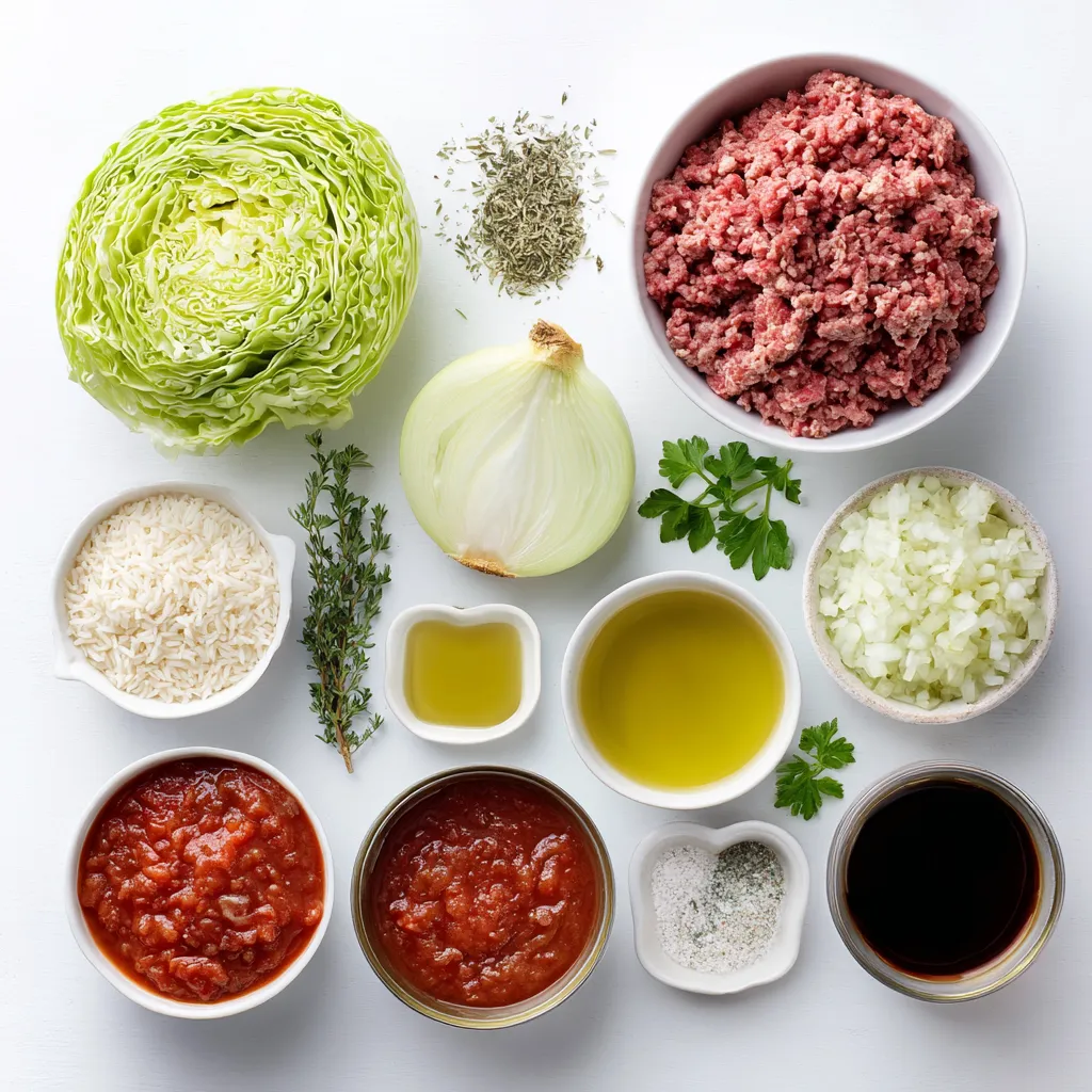 To make cabbage roll soup, gather all your ingredients first. This helps you stay organized. You need a medium head of green cabbage, ground beef, cooked rice, onion, garlic, crushed tomatoes, broth, Worcestershire sauce, herbs, salt, and pepper. Chopping the cabbage and dicing the onion ahead of time saves time.