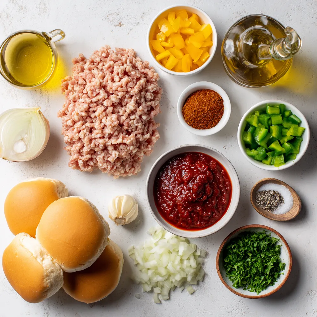To create the perfect Cajun Chicken Sloppy Joes, gather the ingredients. Start with one pound of ground chicken. This lean meat keeps the dish light but flavorful.