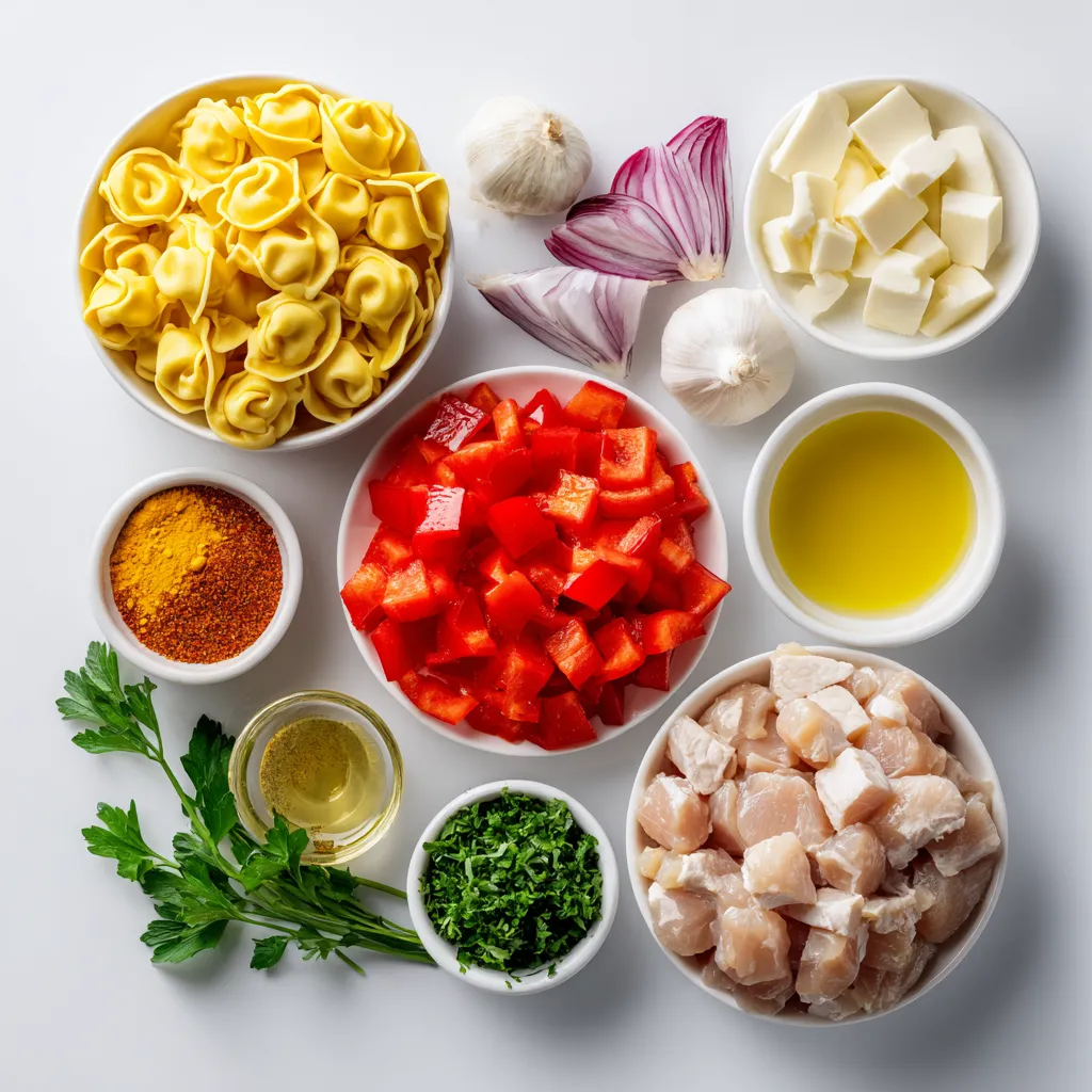 When I make Cajun chicken tortellini, I love using fresh ingredients. They bring out the best flavors. You need chicken, of course. I prefer boneless, skinless chicken breast cut into cubes. This way, they cook quickly and soak up all the spices.