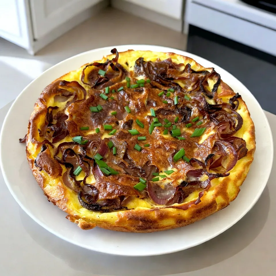 A delicious frittata made with caramelized onions and Gruyère cheese.