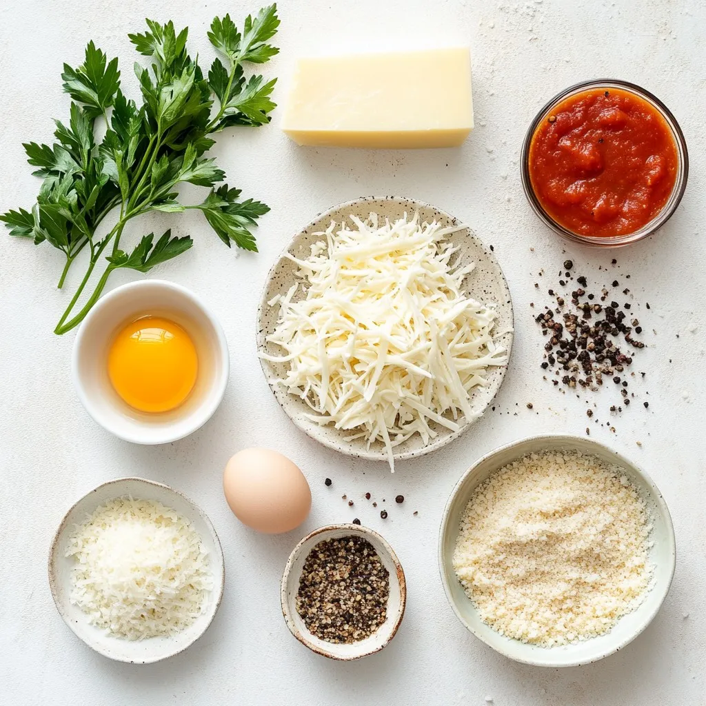To make Cheesy Parmesan Mozzarella Bites, you will need a few simple ingredients. First, gather the cheese. You want one cup of shredded mozzarella cheese. This cheese melts well and adds a nice stretch. Then, grab half a cup of grated Parmesan cheese. This cheese adds a rich and salty flavor.