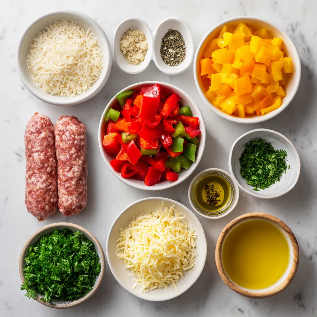 The main ingredients in this dish bring together rich flavors and textures. The Italian sausage really adds heartiness to the meal. I love using long-grain rice because it cooks evenly and absorbs all the tasty broth. The bell peppers and onion provide a sweet crunch, while garlic powder and Italian seasoning create a warm flavor.