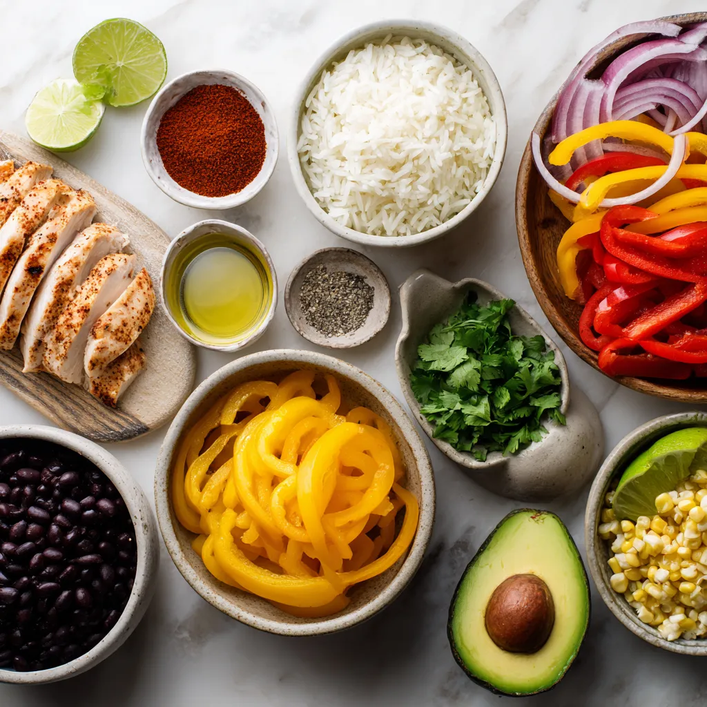 When making Chicken Fajita Rice Bowls, you need fresh and tasty ingredients. First, let’s talk about the main ingredients. You want to use good quality chicken breast. Slice it into thin strips. This helps it cook evenly.