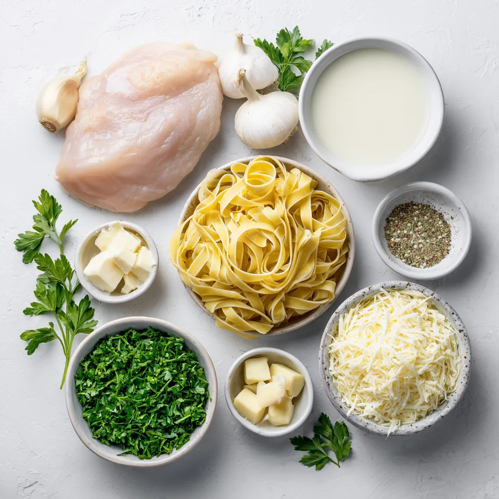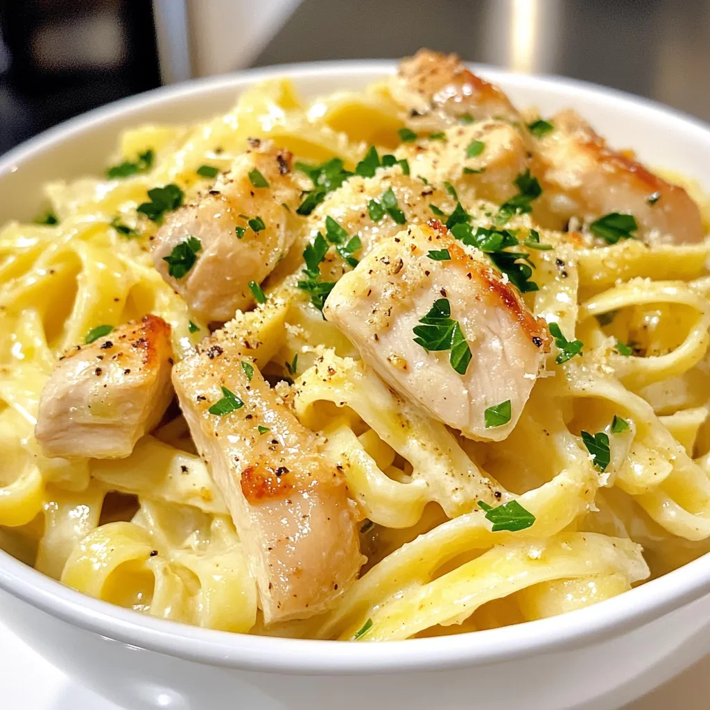 A rich and creamy pasta dish featuring tender chicken and a flavorful garlic Parmesan sauce.