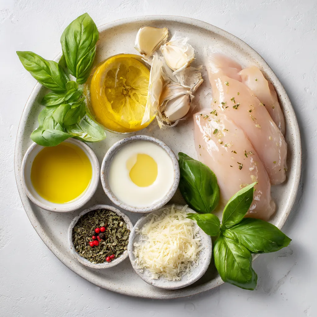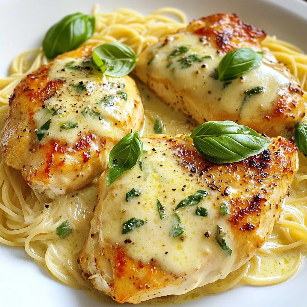 - 4 boneless, skinless chicken breasts - 1 tablespoon olive oil - 3 cloves garlic, minced - 1 cup heavy cream - 1 cup fresh basil leaves, chopped - 1 tablespoon lemon juice - 1 teaspoon salt - 1/2 teaspoon black pepper - 1/2 teaspoon red pepper flakes (optional for heat) - 1/4 cup grated Parmesan cheese - Cooked pasta or rice (for serving) You can swap chicken breasts for thighs. They add richer flavor. Use coconut milk instead of heavy cream for a lighter option. If you don’t have fresh basil, use 2 teaspoons of dried basil. For a dairy-free version, try nutritional yeast instead of Parmesan cheese. When measuring basil, pack the leaves for a stronger taste. If you use a liquid measuring cup for cream, pour slowly to avoid spills. A kitchen scale can help if you want precise weights. For lemon juice, roll the lemon on the counter to get more juice out. {{ingredient_image_1}} First, grab a large skillet. Heat one tablespoon of olive oil over medium heat. Place the four chicken breasts in the skillet. Season them with one teaspoon of salt, half a teaspoon of black pepper, and red pepper flakes if you like some heat. Cook the chicken for about five to seven minutes on each side. Look for a nice golden brown color. Make sure the chicken is cooked through. Once done, take the chicken out and set it aside. In the same skillet, add three minced garlic cloves. Sauté them for about one minute until they smell great. Next, pour in one cup of heavy cream. Bring it to a gentle simmer. Stir in one cup of chopped fresh basil leaves, one tablespoon of lemon juice, and a quarter cup of grated Parmesan cheese. Mix well and let it simmer for three to four minutes. You want the sauce to thicken a little. Now, return the cooked chicken to the skillet. Coat the chicken in the creamy basil sauce. Cook it for two to three more minutes to heat everything through. This step packs flavor into the chicken. Serve the chicken over cooked pasta or rice. Don’t forget to spoon some extra sauce on top! To cook chicken perfectly, start with even-sized pieces. This helps them cook evenly. I recommend using boneless, skinless chicken breasts. They stay juicy and tender. Season the chicken well with salt and pepper. Heat olive oil in a skillet over medium heat. Cook the chicken for about 5-7 minutes on each side. Look for a golden-brown color. Use a meat thermometer to check for doneness. The internal temperature should reach 165°F. This ensures your chicken is safe and delicious. A creamy basil sauce should be smooth and rich. Start by sautéing garlic in the same skillet. This adds flavor to the sauce. When you pour in the heavy cream, bring it to a gentle simmer. Stir often to prevent burning. Add chopped basil and lemon juice to enhance the taste. If the sauce is too thick, add a splash of chicken broth or pasta water. If it’s too thin, let it simmer longer. The sauce will thicken as the cheese melts in. Aim for a velvety texture that clings to the chicken. Presentation matters when serving chicken in basil cream sauce. Serve it over a bed of cooked pasta or rice. This adds color and texture to your plate. Spoon extra sauce over the chicken for a tasty touch. Garnish with fresh basil leaves for a pop of color. A sprinkle of Parmesan cheese adds a nice finishing touch. For a zesty kick, add lemon wedges on the side. This dish looks beautiful and tastes even better! Pro Tips Use Fresh Basil: Fresh basil adds a vibrant flavor to the dish. If you can, use it instead of dried basil for the best results. Adjust Creaminess: If you prefer a lighter sauce, you can substitute half of the heavy cream with chicken broth for a delicious balance. Perfectly Cooked Chicken: Use a meat thermometer to ensure your chicken reaches an internal temperature of 165°F (75°C) for safety and moisture. Garnishing Ideas: For an extra pop of flavor, consider garnishing your dish with toasted pine nuts or a drizzle of balsamic reduction. {{image_2}} You can add vegetables to this dish for more taste. Try adding spinach, tomatoes, or bell peppers. These veggies pair well with the creamy sauce. Just sauté them in the skillet before adding the cream. They add color and nutrition. You can also use zucchini or asparagus for a fresh twist. If you want a change from chicken, swap in shrimp or tofu. Shrimp cooks quickly and adds a seafood touch. Tofu is a great plant-based option. Just make sure to press the tofu to remove extra water. This way, it absorbs the sauce better. Both options work well with the creamy basil flavor. To change the heat level, play with spices. If you like it spicy, add more red pepper flakes. For a milder dish, skip the flakes. You can also use a pinch of cayenne pepper for extra heat. Alternatively, adding a touch of smoked paprika gives a nice flavor without much heat. Customize it to suit your taste! To store leftovers, let the chicken cool down first. Place the chicken and sauce in an airtight container. This keeps it fresh longer. You can store it in the fridge for up to three days. Be sure to cover it well to prevent drying out. When you want to reheat, use a skillet. Heat it over medium-low heat. Add the chicken with sauce and warm it gently. Stir often to avoid burning. You can also microwave it. Place it in a microwave-safe dish and cover it. Heat in short bursts until it's hot. Always check the center is warm. To freeze the dish, let it cool completely. Transfer the chicken and sauce to a freezer-safe container. Seal it tightly to prevent freezer burn. It can last up to three months in the freezer. When ready to eat, thaw it overnight in the fridge. Then, reheat as above before serving. Yes, you can use dried basil. It will change the flavor a bit. Use about one teaspoon of dried basil for every tablespoon of fresh. Dried herbs are stronger, so start small. Add it to the cream sauce early, so it has time to soften. Fresh basil gives a bright taste, but dried works in a pinch. This dish pairs well with pasta or 