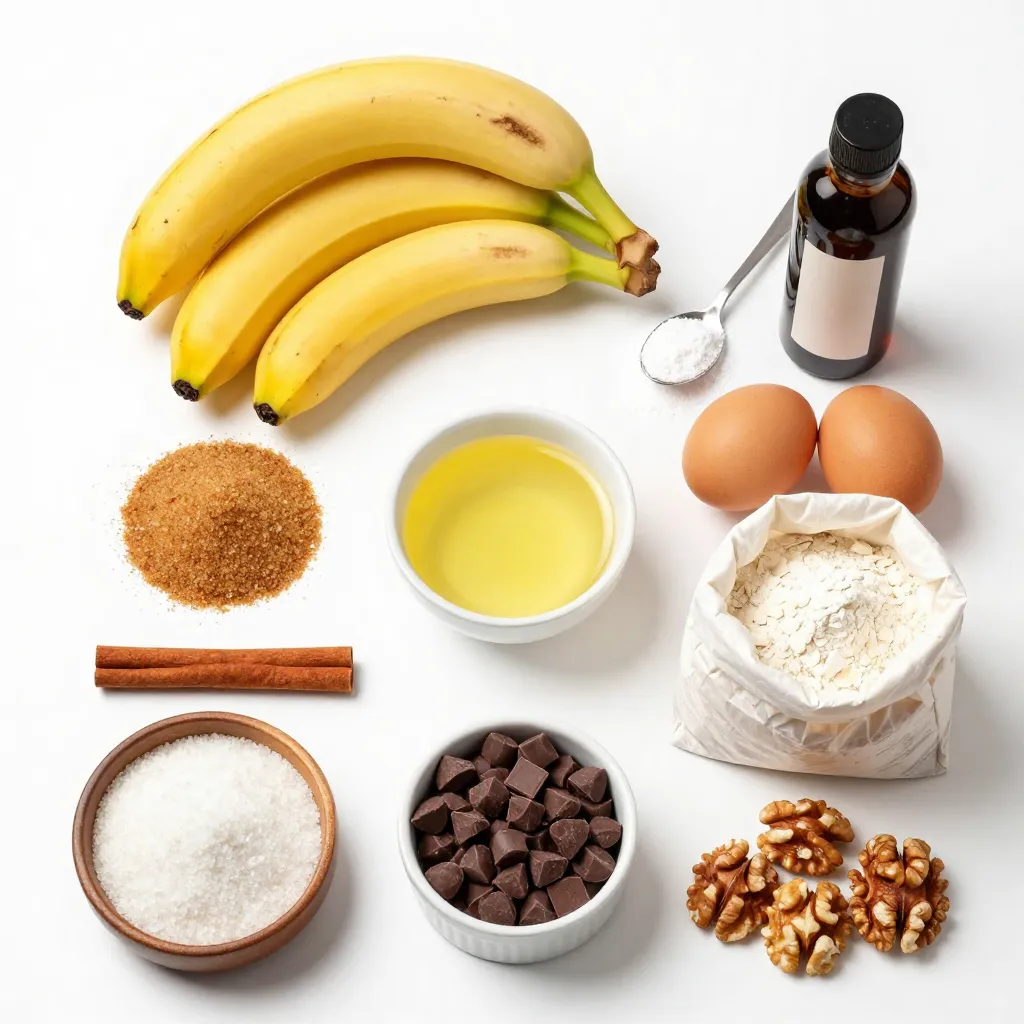 Make sure your bananas are ripe for the best flavor. The sugars enhance the sweetness, while cinnamon adds warmth. This list keeps it easy and fun for you. Enjoy gathering these items and getting ready to bake!