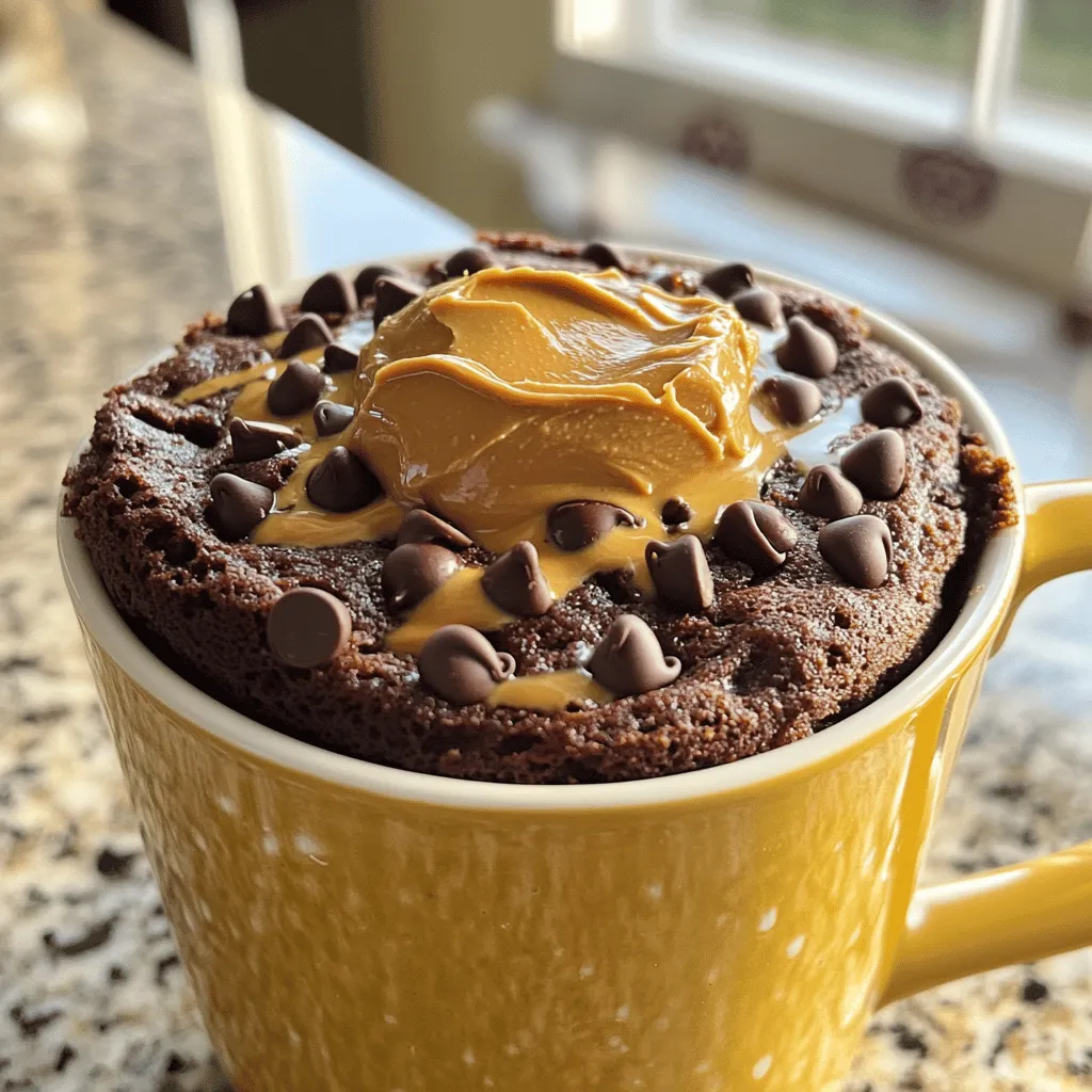 To make a delicious chocolate peanut butter mug cake, gather these simple items: