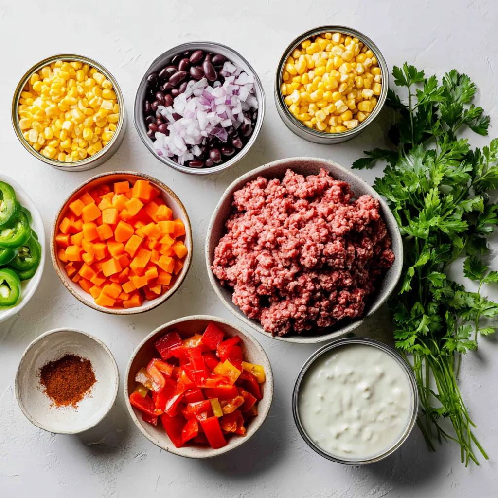 Each ingredient plays a key role. The ground beef gives the soup its rich base. Onions and garlic add depth and aroma. Carrots and bell peppers bring a sweet crunch. Black beans and corn add heartiness. Diced tomatoes offer a tangy kick. Beef broth gives the soup its savory profile. Heavy cream makes it creamy and smooth. Spices like chili powder, cumin, and smoked paprika add warmth and a hint of smoke.