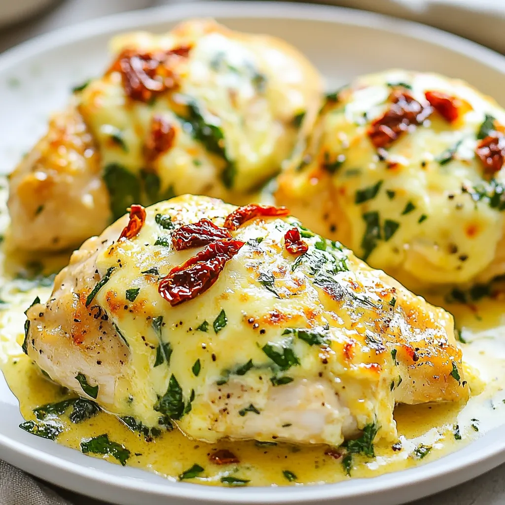 When choosing chicken breasts, look for a pink color with no spots. The meat should feel firm and look moist. For spinach, fresh leaves should be bright green and crisp. If using frozen, make sure it is fully thawed and drained. Sun-dried tomatoes should be plump and packed in oil for the best flavor. Always check expiration dates on cream cheese and mozzarella to ensure freshness.