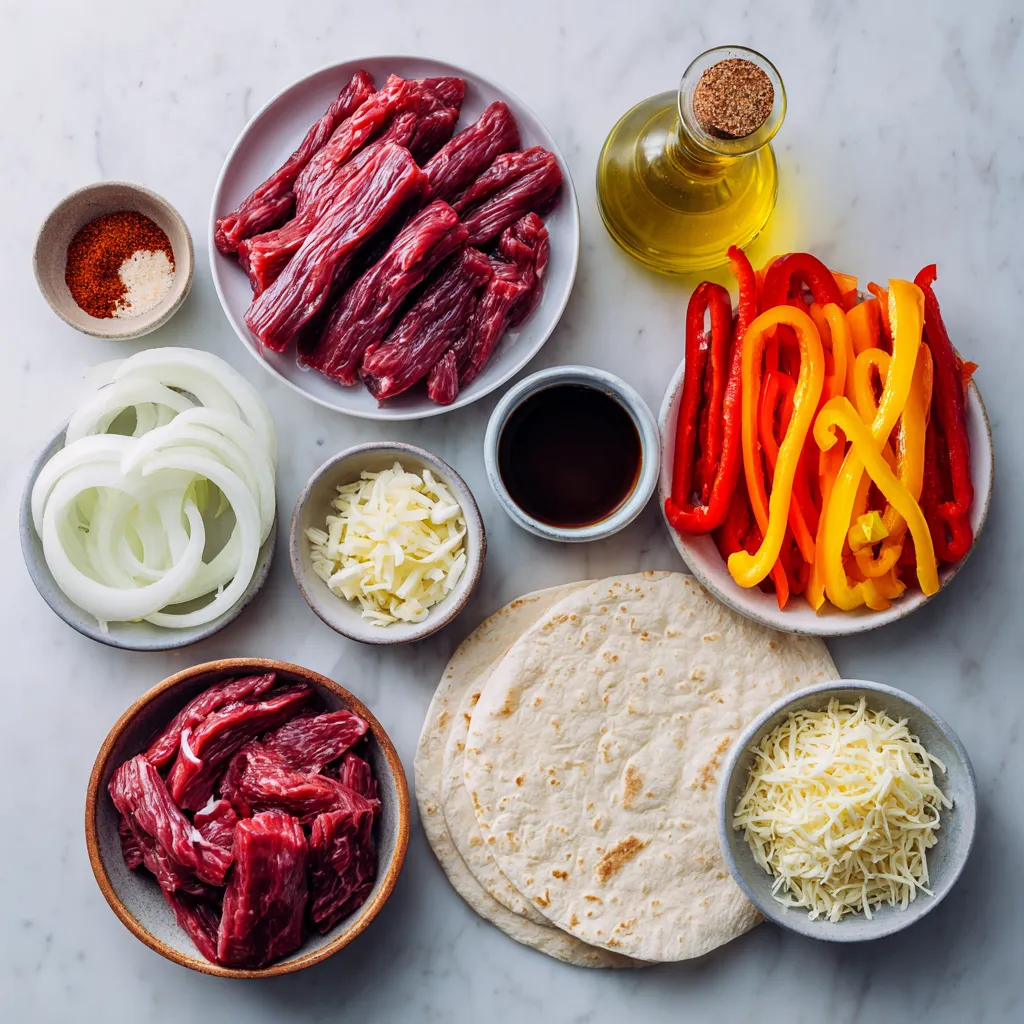 To make these tasty crispy cheesesteak chimichangas, you need a few key items. Gather these ingredients: