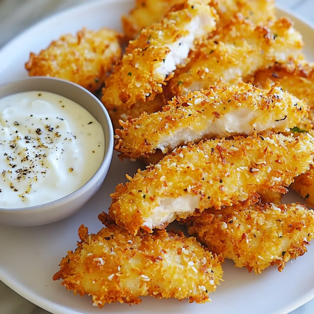 To make your chicken strips super crispy, use panko breadcrumbs. Panko is lighter and crunchier than regular breadcrumbs. It gives your chicken a great texture.