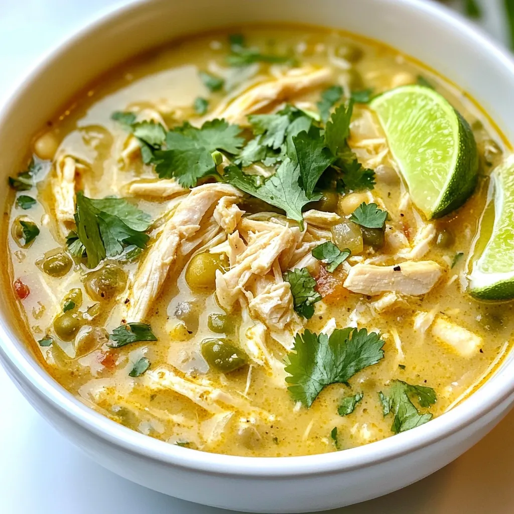A rich and creamy chili featuring tender chicken, white beans, and spices, perfect for a comforting meal.