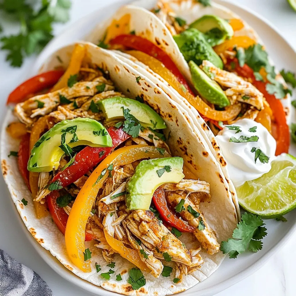 Assemble Tortillas: Serve the fajita mixture in warmed tortillas and top with your choice of avocado, sour cream, cheese, cilantro, and lime juice.