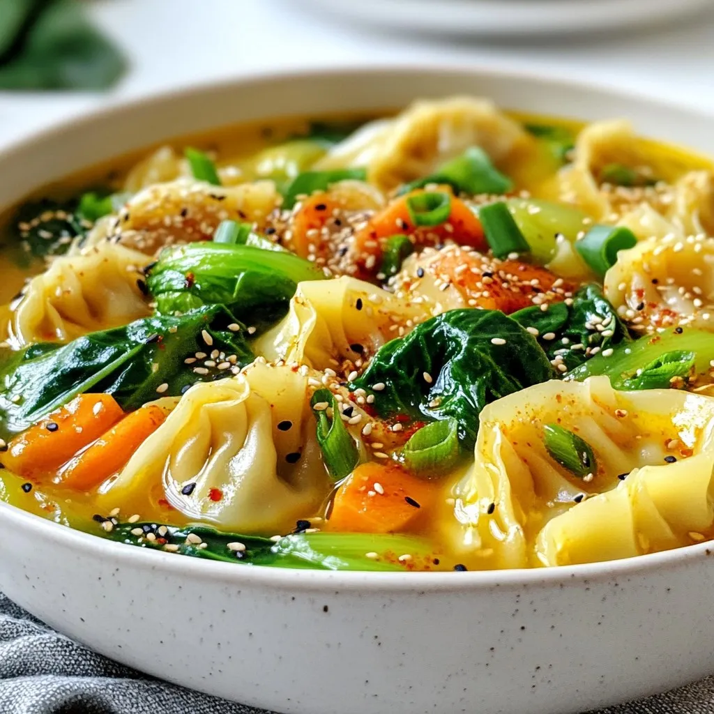 A comforting and flavorful soup featuring frozen potstickers and fresh vegetables.