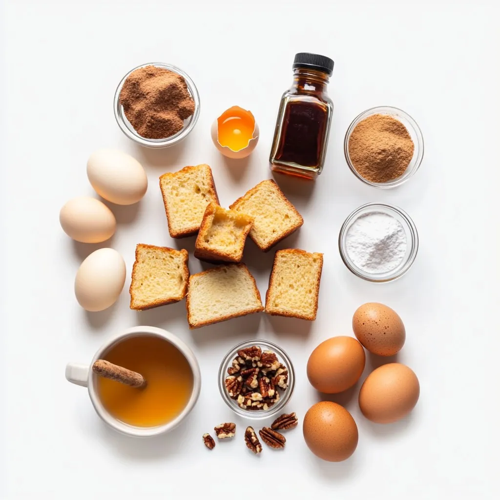 - 1 loaf of challah or brioche bread, cut into cubes - 3 cups eggnog - 6 large eggs - 1 teaspoon vanilla extract - 1 teaspoon ground cinnamon - 1/2 teaspoon ground nutmeg - 1/4 cup brown sugar - 1/4 cup maple syrup (plus more for serving) - 1/2 cup chopped pecans (optional) - Powdered sugar for dusting When making Eggnog French Toast Bake, start with the right bread. Challah or brioche works best. They are soft and soak up the eggnog well. This makes every bite tasty. Next, use good eggnog. Look for rich and creamy eggnog. It adds flavor and a festive touch. The eggnog is the star of this dish. You will need eggs for this recipe too. Six large eggs create a rich custard. This custard helps bind the bread together and gives it a fluffy texture. Don't forget the spices! Ground cinnamon and nutmeg give warmth and depth. They turn the bake into a holiday treat. Add a teaspoon of vanilla for extra flavor. Brown sugar and maple syrup add sweetness. They balance the spices and eggnog. You can also add chopped pecans for a nice crunch. Lastly, powdered sugar is perfect for dusting. It gives a lovely finish. You can serve this dish warm with extra maple syrup on top. {{ingredient_image_1}} 1. Start by preheating your oven to 350°F (175°C). Grease a 9x13-inch baking dish with butter or cooking spray. This helps prevent sticking and makes cleanup easy. 2. In a large mixing bowl, whisk together the eggnog, eggs, vanilla extract, ground cinnamon, ground nutmeg, brown sugar, and maple syrup. Mix until smooth and well combined. This mixture will soak into the bread. 3. Next, add the cubed bread to the bowl. Gently toss the bread in the eggnog mix. Make sure each piece is coated. If you like, fold in the chopped pecans now for extra crunch. 1. Pour the mixture into the prepared baking dish. Spread it evenly and press down gently. This ensures all the bread gets the eggnog mix. 2. Cover the baking dish with foil. Place it in the fridge for at least 30 minutes. For best results, let it chill overnight. This soaking time helps the bread absorb all the flavors. 3. When you're ready to bake, remove the foil. Bake in the preheated oven for 30-35 minutes. The top should be golden brown, and the center should be set. 4. Once baked, allow the French toast bake to cool for a few minutes. Dust the top with powdered sugar. Serve it warm, drizzled with more maple syrup for that sweet touch. Soaking time is key for great texture. I recommend letting the bread sit in the eggnog mix for at least 30 minutes. For the best results, soak it overnight. This helps the bread absorb all the creamy goodness. Even baking is also important. Make sure to spread the bread evenly in the dish. Press it down gently. This ensures every piece gets cooked through. Check it halfway through baking. If the top is browning too fast, cover it with foil. To boost flavor, add extra spices. A pinch of ginger or cloves can elevate the taste. You can also mix in some vanilla extract for a sweeter note. For toppings, think about options that add texture. Chopped pecans give a nice crunch. You could also use fresh fruit like berries or bananas. Drizzle some maple syrup on top for extra sweetness. When serving, a dusting of powdered sugar makes it look lovely. Add a sprig of mint for color. These simple touches make your dish shine! Pro Tips Choose the Right Bread: Using challah or brioche will give your French toast bake a rich and buttery flavor. Avoid regular sandwich bread for a less indulgent result. Soak Time Matters: Allowing the bread to soak in the eggnog mixture for at least 30 minutes (or overnight) ensures that every piece absorbs the custard, leading to a creamy texture. Watch the Baking Time: Keep an eye on your bake as it cooks. If the top gets too dark before the center is set, cover it loosely with foil until fully cooked. Flavor Enhancements: For added depth, consider incorporating a splash of bourbon or rum into the eggnog mixture for a festive twist. {{image_2}} You can make this dish even better with some easy swaps. If you want a non-dairy version, use almond or coconut milk eggnog. These alternatives keep the creamy taste while cutting out dairy. For the bread, try sourdough or gluten-free bread. Each type brings a unique flavor and texture to the bake. Add a twist to your Eggnog French Toast Bake. Use pumpkin spice for a seasonal touch. Just swap out some cinnamon for pumpkin spice. You can also throw in fruity add-ins like sliced bananas or berries. If you're feeling adventurous, add chocolate chips for a sweet treat. These options let you customize the dish to your taste. To keep your Eggnog French Toast Bake fresh, store it in the fridge. Place it in a tight container or cover it with plastic wrap. This helps keep flavors locked in. Leftovers will stay good for about four days. If you want to save it longer, you can freeze it. Wrap individual slices in plastic wrap, then place them in a freezer bag. This method saves space and makes it easy to grab a piece. Frozen, it can last up to two months. When it's time to enjoy your leftovers, reheating is key. The best way is in the oven. Preheat your oven to 350°F (175°C). Place the slices on a baking sheet and cover them with foil. Heat for about 15-20 minutes. This keeps the texture nice and soft. You can also use a microwave if you're in a hurry. Heat a slice for 30-45 seconds. Just remember, it may not be as crisp as from the oven. Enjoy it warm with a drizzle of syrup for the best taste. Yes, you can prepare it the night before. After mixing everything, cover the dish. Keep it in the fridge overnight for best flavor. This helps the bread soak up the eggnog mix. To avoid sogginess, let the bread soak for the right time. If you soak too long, it might get too wet. Press the bread down gently into the mix to ensure even soaking. You can serve it with fresh fruit, like berries or bananas. A drizzle of maple syrup adds sweetness. A dollop of whipped cream also makes a great top