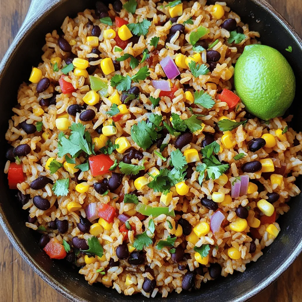 Each ingredient adds flavor and nutrition. Long-grain brown rice is hearty and fills you up. Vegetable broth gives the rice a rich taste. Black beans are full of protein and fiber. Corn adds sweetness and color. Fresh veggies like bell pepper, onion, and garlic brighten the dish. Spices like cumin, chili powder, and smoked paprika bring warmth. Olive oil adds richness, while lime juice and cilantro finish it off with freshness. Enjoy this blend of flavors and colors on your table!