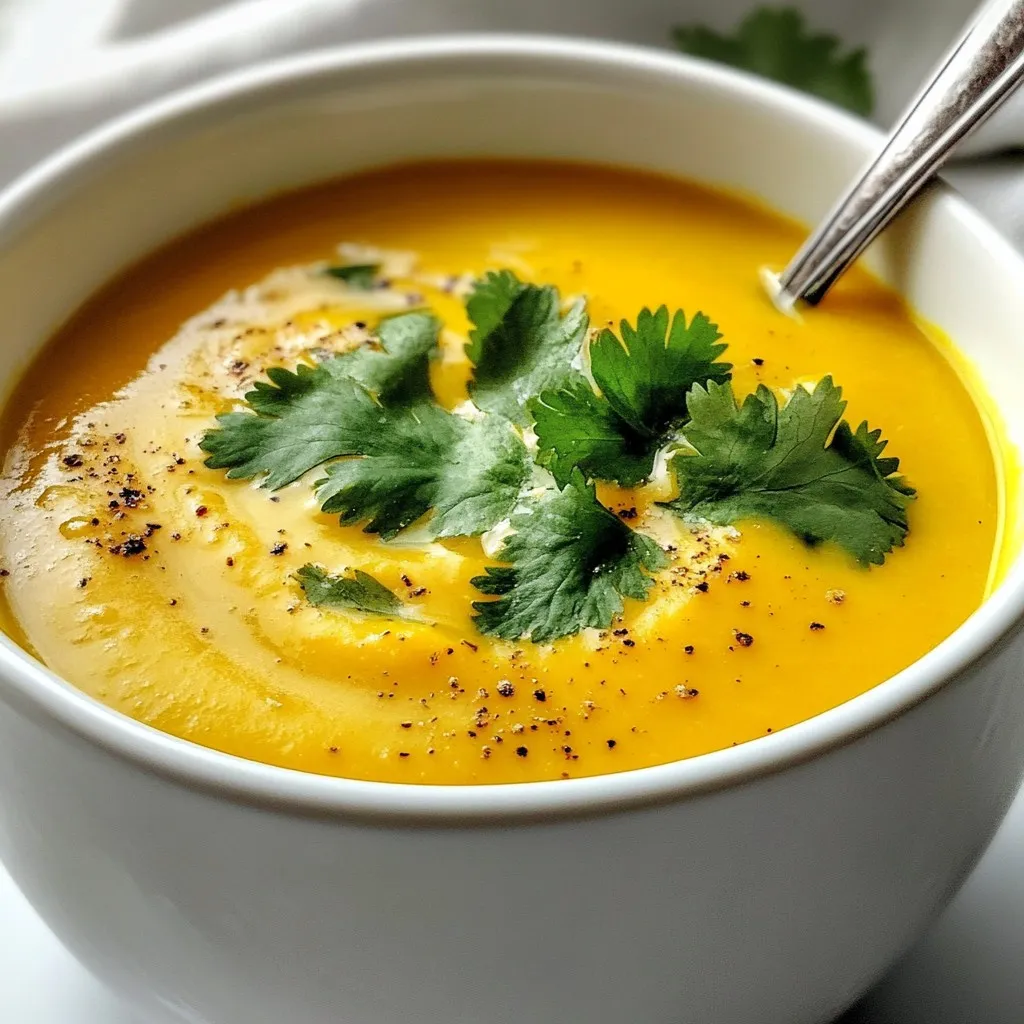 A vibrant and healthy soup made with carrots, ginger, and turmeric, perfect for warming up on a chilly day.