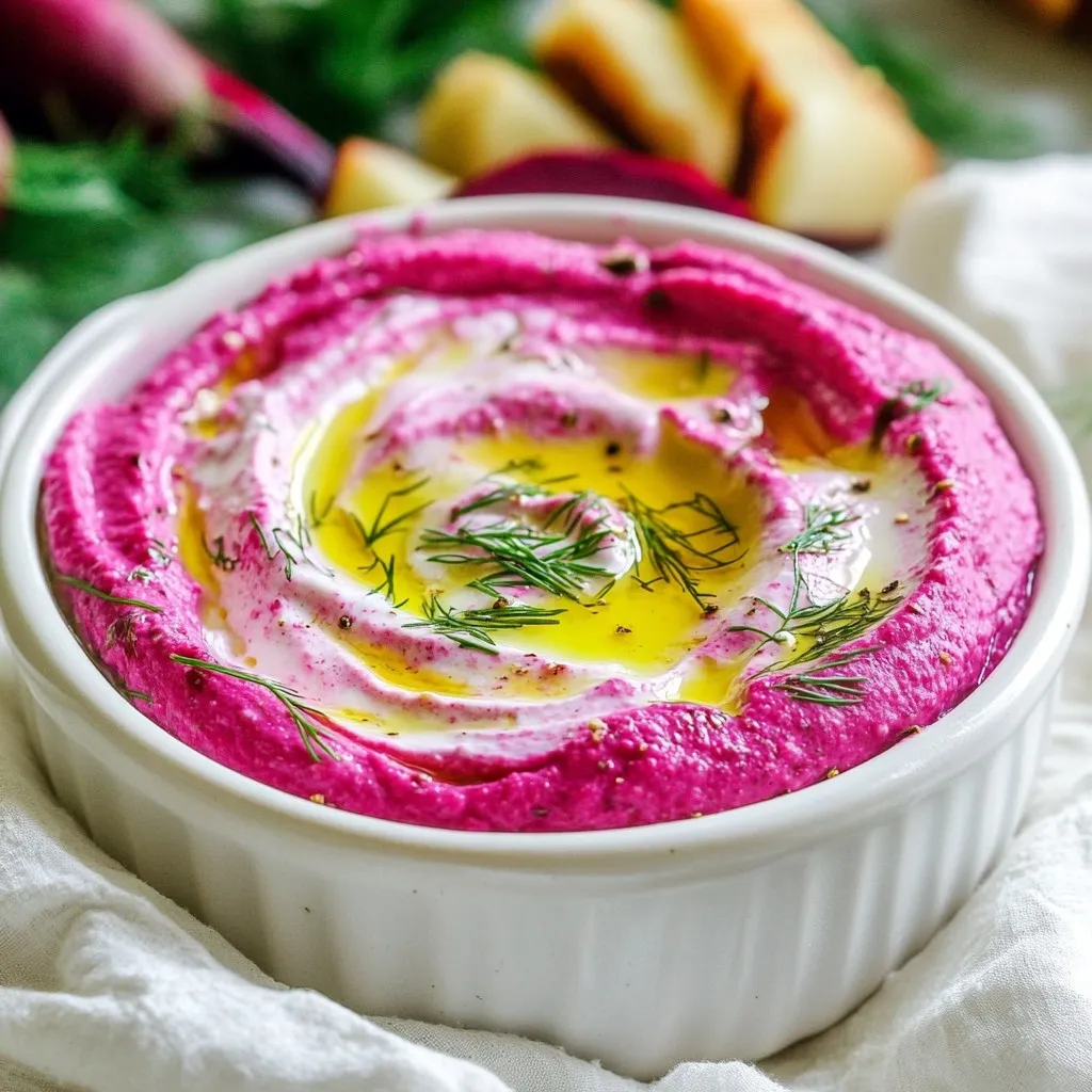 The beetroots give the dip a vibrant color and a sweet, earthy flavor. They’re the star of this dish. Greek yogurt adds creaminess and tang. It makes the dip smooth and rich. Tahini brings a nutty taste and depth. It enhances the flavor profile nicely. Lemon juice adds brightness and balances the sweetness of the beets. Garlic gives a hint of spice and a savory note. Salt and black pepper round out the flavors, making them pop. Olive oil adds a lovely finish when drizzled on top. Finally, fresh dill or parsley adds freshness and a pop of color.