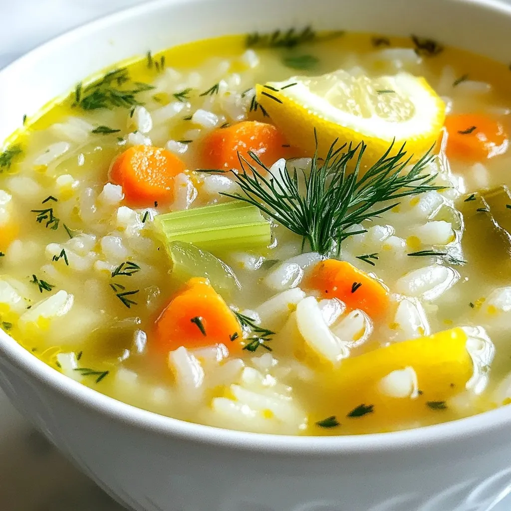 A refreshing and hearty soup made with rice, eggs, and lemon, perfect for a light meal.
