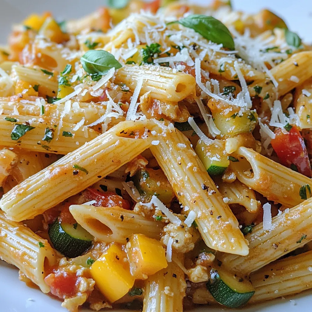 To make my Ground Turkey Pasta, gather these simple ingredients: - 1 pound ground turkey - 8 ounces whole wheat pasta (penne or fusilli) - 2 tablespoons olive oil - 1 small onion, diced - 3 cloves garlic, minced - 1 bell pepper (any color), diced - 1 zucchini, diced - 1 teaspoon Italian seasoning - 1/2 teaspoon red pepper flakes (optional) - 1 can (14.5 oz) crushed tomatoes - 1 cup low-sodium chicken broth - Salt and pepper to taste - 1/2 cup grated Parmesan cheese - Fresh basil leaves for garnish These ingredients come together to create a dish that is both tasty and filling. The ground turkey provides a lean protein option, while the whole wheat pasta adds fiber. Use fresh veggies like onions, garlic, bell peppers, and zucchini for color and flavor. The Italian seasoning and red pepper flakes give it a nice kick. The crushed tomatoes and chicken broth form a rich sauce that brings everything together. Don't forget the Parmesan cheese! It adds creaminess and depth. Finally, garnish with fresh basil for a pop of color and flavor. Now you're ready to cook! {{ingredient_image_1}} To start, bring a large pot of salted water to a boil. Add 8 ounces of whole wheat pasta. I like penne or fusilli. Cook it until it's al dente, which usually takes about 8-10 minutes. Once done, drain the pasta and set it aside. This step is simple but key for a great texture. Next, take a large skillet and heat 2 tablespoons of olive oil over medium heat. Add 1 pound of ground turkey to the pan. Use a spatula to break it apart. Cook the turkey until it turns brown, which takes about 5-7 minutes. This step adds a nice depth of flavor to your dish. Once the turkey is cooked, it’s time to add some color. Toss in 1 small diced onion, 3 minced garlic cloves, 1 diced bell pepper, and 1 diced zucchini. Sauté these veggies for about 5 minutes. You want them to be tender but still bright. After that, stir in 1 teaspoon of Italian seasoning and 1/2 teaspoon of red pepper flakes if you like a little heat. Cook for another minute until the smells fill your kitchen. Now, pour in 1 can of crushed tomatoes and 1 cup of low-sodium chicken broth. Stir everything together. Bring this mixture to a gentle simmer. Let it cook for about 10 minutes. This allows the flavors to blend beautifully. You can taste and add salt and pepper to your liking. After the sauce is ready, add the drained pasta to the skillet. Stir well to coat each piece in the sauce. This is where all the magic happens. Make sure the pasta is evenly mixed in. Taste one more time and adjust any seasonings if needed. When you’re ready to serve, remove the skillet from the heat. Sprinkle 1/2 cup of grated Parmesan cheese over the top. It adds a rich flavor. For a fresh touch, garnish with some basil leaves. Serve it hot and enjoy your flavorful meal! To cook ground turkey well, keep it simple. Start with medium heat. This helps the turkey brown nicely. Use a spatula to break it apart as it cooks. This helps it cook evenly. Ensure it reaches a safe temperature of 165°F. This makes sure it is safe to eat. Cooking whole wheat pasta is easy. Use a large pot with plenty of water. Add salt to the water for flavor. Cook the pasta until it is al dente. Check the package for timing. Drain it, but do not rinse. This keeps the starch to help sauce stick. To boost flavor, add herbs and spices. Italian seasoning is a great start. Red pepper flakes give it a kick. You can also add fresh herbs. Basil or parsley adds freshness. Another tip is to sauté your garlic until golden. This adds a rich taste to your dish. To make this dish kid-friendly, keep it mild. Skip the red pepper flakes if your kids don’t like spice. You can also add hidden veggies. Try pureeing cooked carrots or spinach into the sauce. Kids love pasta shapes like penne or fusilli. They are fun to eat and easy to hold. Pro Tips Use Lean Turkey: Opt for lean ground turkey to reduce the fat content while still keeping the dish flavorful. Customize Veggies: Feel free to add any seasonal vegetables you have on hand for a personalized touch and added nutrients. Perfect Pasta Texture: Make sure to cook the pasta al dente for the best texture and to prevent it from becoming mushy once mixed with the sauce. Enhance Flavor: Try adding a splash of balsamic vinegar or a pinch of sugar to the sauce for a deeper, more complex flavor profile. {{image_2}} You can change the sauce for ground turkey pasta to match your taste. Try a creamy Alfredo sauce for a rich twist. A simple basil pesto adds fresh flavor. You can even use a spicy marinara for a kick. Each sauce gives a new life to this dish. Not all pasta has to be the same. You can swap whole wheat pasta for gluten-free options like rice or quinoa pasta. You can try shapes like spaghetti, rotini, or even farfalle. Each type will change the texture and look of your meal. If you want a vegetarian meal, swap ground turkey for lentils or mushrooms. Use black beans for protein and added depth. Tofu also works well when crumbled. You can keep all the same veggies and sauce for a tasty dish. Seasonal ingredients can make your ground turkey pasta even better. In spring, add fresh asparagus or peas. Summer is great for ripe tomatoes and sweet corn. In fall, consider using butternut squash or kale. Winter can be brightened with fresh spinach or root veggies. These changes keep your meals fresh and exciting. To store leftovers, let the turkey pasta cool down first. Use an airtight container. Place the pasta in the container and seal it well. This helps keep it fresh. Store the container in the fridge for up to three days. When you want to eat it, just reheat! For reheating, you can use the stove or microwave. If using the stove, add a splash of water to a pan. Heat on low while stirring often until warm. If you prefer the microwave, place the pasta in a microwave-safe dish. Cover it and heat for about 1-2 minutes. Stir halfway through to heat evenly. You can freeze this dish too! Firs
