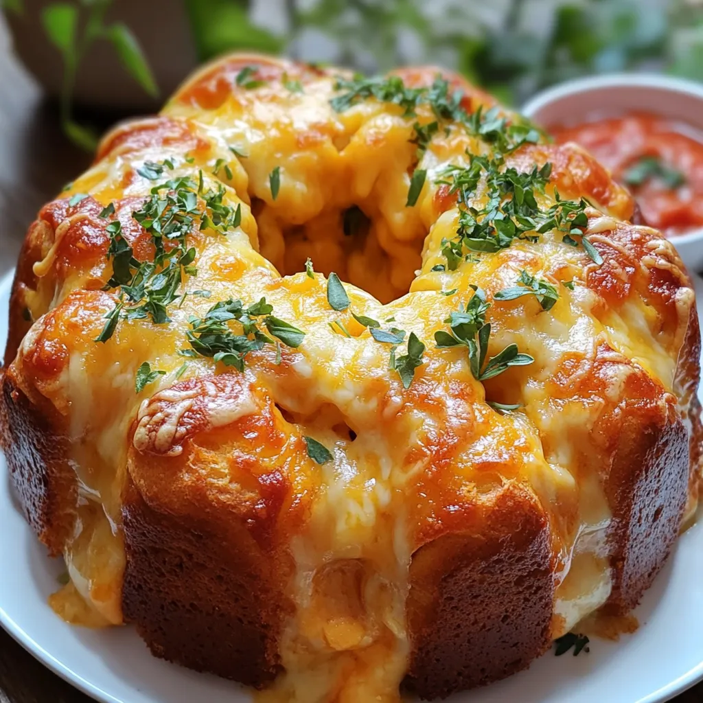- 2 cans of refrigerated biscuit dough (16 oz each) - 1 cup shredded mozzarella cheese - 1 cup shredded cheddar cheese - 1/2 cup unsalted butter, melted - 2 tablespoons fresh parsley, chopped - 2 tablespoons fresh basil, chopped - 1 tablespoon fresh thyme, chopped - 2 cloves garlic, minced - 1 teaspoon garlic powder - 1/2 teaspoon onion powder - Salt and pepper to taste - Extra fresh herbs for garnish - Marinara sauce for dipping When making Herb Cheese Monkey Bread, gather all your ingredients first. Start with the main ingredients. You need two cans of refrigerated biscuit dough. This will be the base of your bread. Next, grab one cup of shredded mozzarella cheese. The mozzarella gives that gooey texture we all love. Then, use one cup of shredded cheddar cheese for a sharp flavor. Lastly, have half a cup of melted unsalted butter ready. This butter will help the dough and cheese blend well. Next, let’s talk about the fresh herbs and spices. You want two tablespoons of fresh parsley, chopped. This herb adds a nice touch of color and flavor. Then, include two tablespoons of fresh basil, also chopped. Basil brings a sweet and aromatic aspect to your dish. You will also need one tablespoon of fresh thyme. Thyme has a warm and earthy taste that pairs well with cheese. Don’t forget two cloves of minced garlic for a strong flavor kick. Add one teaspoon of garlic powder and half a teaspoon of onion powder for extra depth. Finally, season with salt and pepper to your liking. For those who want to elevate their dish, consider optional ingredients. Extra fresh herbs can make your monkey bread look even better. Serving marinara sauce on the side for dipping adds a fun twist. It’s great for sharing and enhances the whole experience. - Preheat oven to 350°F (175°C). - Grease the bundt cake pan with a bit of butter or non-stick spray. - In a bowl, combine melted butter, minced garlic, parsley, basil, thyme, garlic powder, onion powder, salt, and pepper. - Mix well to form the herbed butter. This blend gives the bread its awesome flavor. - Open the cans of biscuit dough and cut each biscuit into quarters. - In a large bowl, add the biscuit pieces. Pour half of the herbed butter mixture over them. - Sprinkle half of the mozzarella and cheddar cheese on top. Toss everything until the dough is coated and the cheese is mixed in. - Layer half of the coated biscuit pieces in the prepared bundt pan. - Sprinkle the remaining cheese over this layer. - Pour the rest of the herbed butter mixture on top. - Add the remaining biscuit pieces, spreading them evenly in the pan. - Place the bundt pan in the preheated oven. Bake for 30 to 35 minutes. - Check for a golden brown color and ensure it’s cooked through. - Remove from the oven and let it cool for about 5 minutes. - Carefully invert the bundt pan onto a serving platter. This will let the yummy bread come out easily. This method makes your Herb Cheese Monkey Bread both tasty and fun to share! - Make sure to coat all biscuit pieces evenly with the herbed butter. This step is key. - Taste the herbed butter mixture. Adjust the salt and pepper to your liking. - Sprinkle extra fresh herbs on top for a nice finish. They add color and flavor. - Serve with warm marinara sauce for dipping. The tangy sauce pairs well with the bread. - Always grease the bundt pan well. This helps the bread come out easily. - Watch the baking time closely. Overbaking can lead to dry bread. Aim for a golden brown color. {{image_2}} You can make your Herb Cheese Monkey Bread even more fun by adding different cheeses. Try using pepper jack for a spicy kick. Cream cheese can also add a rich, creamy texture. You can mix and match cheeses based on what you love. If you don't have fresh herbs, don’t worry! You can use dried herbs instead. They work well and add great flavor. Feel free to try different herb mixes. Oregano, rosemary, or dill can change the taste in a fun way. Want to make it heartier? Add cooked meats like bacon or sausage. They bring a savory taste that many enjoy. You can also toss in roasted vegetables. Bell peppers, mushrooms, or even spinach can boost flavor and nutrition. To keep your Herb Cheese Monkey Bread fresh, store it in an airtight container in the fridge. This helps to lock in flavor and moisture. It tastes best when eaten within 2-3 days. After that, the bread may lose its soft texture and cheesy goodness. When you're ready to enjoy the leftovers, warm them in the oven for the best results. Set the oven to 350°F (175°C) and heat for about 10-15 minutes. This makes the bread soft again and brings back the gooey cheese. If you're in a hurry, you can use the microwave. Heat in short bursts of 15-20 seconds until warm. Just be careful not to overheat, or the bread may become tough. You can freeze your Herb Cheese Monkey Bread both before and after baking. If you freeze it before baking, wrap it tightly in plastic wrap and then in foil. When you're ready to bake, thaw it in the fridge overnight. If you freeze it after baking, let it cool completely first. Wrap it the same way. Thaw it in the fridge before reheating. This way, you can enjoy this tasty treat any time! You can prepare the dough and herbed butter a day before. To do this, mix the melted butter, garlic, and herbs. Then, store this herbed butter in the fridge. Cut the biscuit dough into quarters and keep it in an airtight container. When you are ready to bake, combine the dough with the herbed butter and cheese. This saves you time and keeps the flavors fresh. Yes, you can use frozen biscuit dough. It works well for this recipe. Just make sure to thaw it first. Refrigerated dough is also great. Both options will give you a tasty monkey bread, so choose what you prefer or have on hand. If you lack fresh herbs, dried herbs are a good choice. Use about one-third of the amount since dried herbs are stronger. For example, if the recipe calls for 2 tablespoons of fresh parsley, use about 2 teaspoons of 