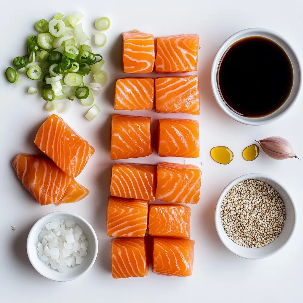 • Place the salmon cubes in the bowl, ensuring they are well-coated in the marinade. Allow to marinate for at least 15 minutes (or up to 1 hour in the refrigerator for deeper flavor).