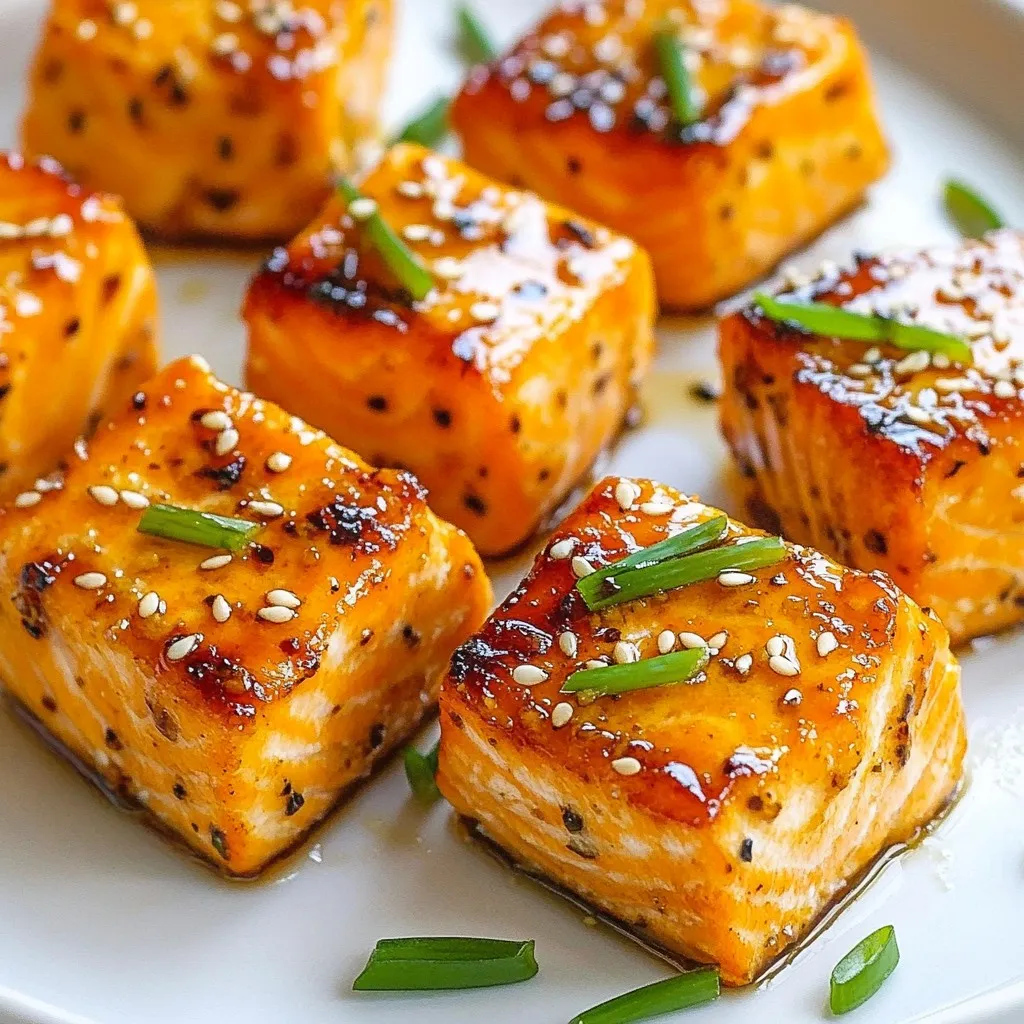 Pair your salmon bites with fresh sides. A light salad or steamed veggies complements the dish. You can also serve them with a creamy dip like garlic aioli. For parties, arrange the bites on a colorful platter. Add toothpicks for easy serving. Drizzle extra sauce over the bites for flair and flavor.