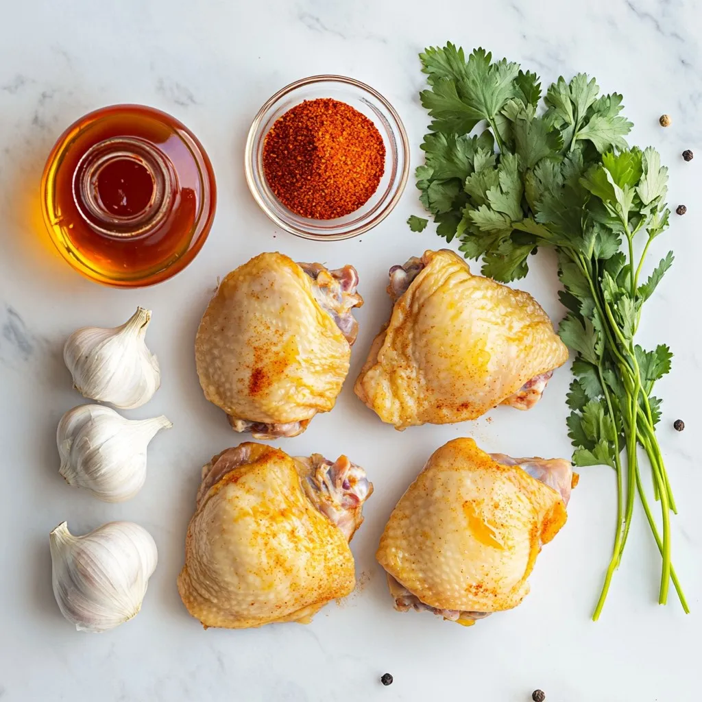 First, set your oven to 425°F (220°C). This high heat helps the chicken cook well. While it heats, grab 4 chicken thighs. Make sure they have bones and skin. Place them in a large baking dish or on a lined baking sheet. The skin helps keep the meat juicy.