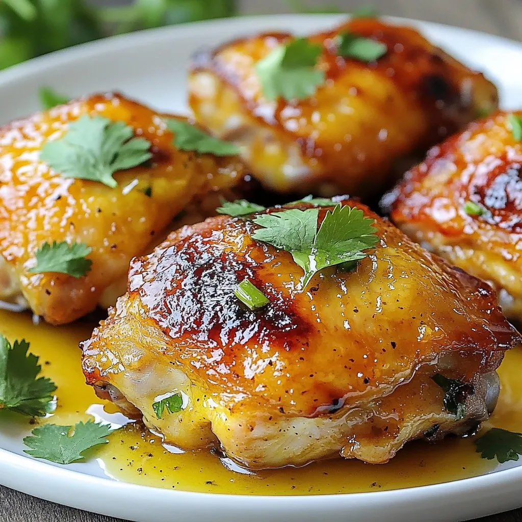 - 4 chicken thighs (bone-in, skin-on) - 1/4 cup honey - 2 tablespoons hot sauce (like Sriracha or your favorite brand) - 1 tablespoon olive oil - 1 teaspoon garlic powder - 1 teaspoon smoked paprika - 1/2 teaspoon salt - 1/2 teaspoon black pepper - Fresh herbs for garnish (such as parsley or cilantro) - Chicken thighs: Use bone-in, skin-on for flavor and moisture. - Honey: This adds sweetness and helps with caramelization. - Hot sauce: Adjust the amount for spice. Sriracha is great! - Olive oil: It adds richness and helps the spices stick. - Garlic powder: This gives a nice depth of flavor. - Smoked paprika: It adds a smoky taste that pairs well with honey. - Salt and black pepper: These enhance the overall flavor. - Fresh herbs: Use for garnish to add color and freshness. Quality matters in your ingredients. Fresh chicken thighs will taste best. Look for organic or free-range chicken if possible. For honey, local honey can add a unique flavor. If you need a substitute, maple syrup works well too. When it comes to hot sauce, you can also try chili paste for different heat levels. If you want it milder, use less hot sauce or choose a sweet chili sauce. Olive oil can be swapped for any neutral oil, like canola or avocado oil. For garlic powder, fresh garlic can be used as well. Just chop one clove for each teaspoon. Smoked paprika gives a distinct flavor, but regular paprika or cayenne can work in a pinch. Salt and pepper are usually easy to find, but sea salt can enhance the taste even more. Fresh herbs are optional but highly recommended. They add a burst of color and freshness to your dish. {{ingredient_image_1}} First, set your oven to 425°F (220°C). This high heat helps the chicken cook well. While it heats, grab 4 chicken thighs. Make sure they have bones and skin. Place them in a large baking dish or on a lined baking sheet. The skin helps keep the meat juicy. In a medium bowl, whisk together the following ingredients: - 1/4 cup honey - 2 tablespoons hot sauce (like Sriracha) - 1 tablespoon olive oil - 1 teaspoon garlic powder - 1 teaspoon smoked paprika - 1/2 teaspoon salt - 1/2 teaspoon black pepper Mix until everything blends well. This mixture gives the chicken its sweet and spicy flavor. Brush the hot honey mixture over the chicken thighs. Make sure they are well coated. Save a bit of the mixture for later. Bake the chicken in the oven for 25 minutes. After this time, take it out and baste the chicken with the reserved mixture. Return it to the oven for another 10-15 minutes. The chicken is done when it reaches 165°F (74°C). For crispy skin, broil the chicken on high for 2-3 minutes. Watch closely to prevent burning. After cooking, let the chicken rest for 5-7 minutes. This helps keep it juicy. To check if your chicken is done, use a meat thermometer. Insert it into the thickest part of the thigh. If it reads 165°F (74°C), it is safe to eat. Letting the chicken rest allows the juices to settle. Garnish with fresh herbs like parsley or cilantro for a nice touch. To get super crispy skin on your chicken, start with bone-in, skin-on thighs. Pat them dry with paper towels first. This step helps remove extra moisture. Moisture leads to soggy skin. Next, use high heat while baking. Preheat your oven to 425°F (220°C) for best results. Right before finishing, switch to broil for 2-3 minutes. Keep a close eye on the chicken. You want it crispy, not burnt! Basting adds flavor and moisture to your chicken. After 25 minutes of baking, take the chicken out and baste with the hot honey mixture you saved. Use a brush to coat the chicken well. This step helps lock in flavors. Repeat this every 10 minutes during baking. It keeps the chicken juicy and adds a glossy finish. Trust me, this small effort makes a big difference! Using the right tools makes cooking easier. Here’s what I recommend: - A large baking dish or lined baking sheet - A whisk for mixing the hot honey sauce - A brush for basting - A meat thermometer to check doneness These tools help you cook the chicken perfectly and save time. Happy cooking! Pro Tips Marinate for More Flavor: For an enhanced flavor experience, consider marinating the chicken thighs in the hot honey mixture for at least 30 minutes or up to overnight in the refrigerator. Use Fresh Ingredients: Fresh garlic and herbs can elevate the dish significantly. Substitute garlic powder with minced garlic and fresh herbs instead of dried for a vibrant flavor. Monitor the Broiling Stage: When broiling, keep a close watch on the chicken. Broiling can quickly turn from perfectly crispy to burnt, so stay nearby and adjust the time as needed. Perfect Searing: For even more flavor, sear the chicken thighs in a hot skillet for a few minutes on each side before baking. This will add a delicious crust and depth of flavor. {{image_2}} You can change the heat in the hot honey baked chicken. If you like it mild, use less hot sauce. Start with one tablespoon and taste. For more heat, add more hot sauce. You can also try different sauces. A spicy barbecue sauce can add a nice twist. While this recipe uses chicken thighs, you can use other cuts. Chicken breasts work too, but they may dry out faster. If you prefer drumsticks, they will also taste great. Just watch the cooking time. Always check that the chicken reaches 165°F for safety. You can make this dish even better with veggies. Cut carrots, potatoes, and bell peppers into small pieces. Toss them in the hot honey mix and place them around the chicken. They will soak up the flavor and cook nicely. You can also serve this chicken with rice or a fresh salad for a complete meal. Store leftover hot honey baked chicken in an airtight container. Make sure it is cool first. This helps keep it fresh. Place it in the fridge if you plan to eat it soon. Use it within 3 to 4 days for the best taste. If you want to keep it longer, consider freezing it. To reheat, preheat your oven to 350°F (175°C). Place the chicken on a baking tray