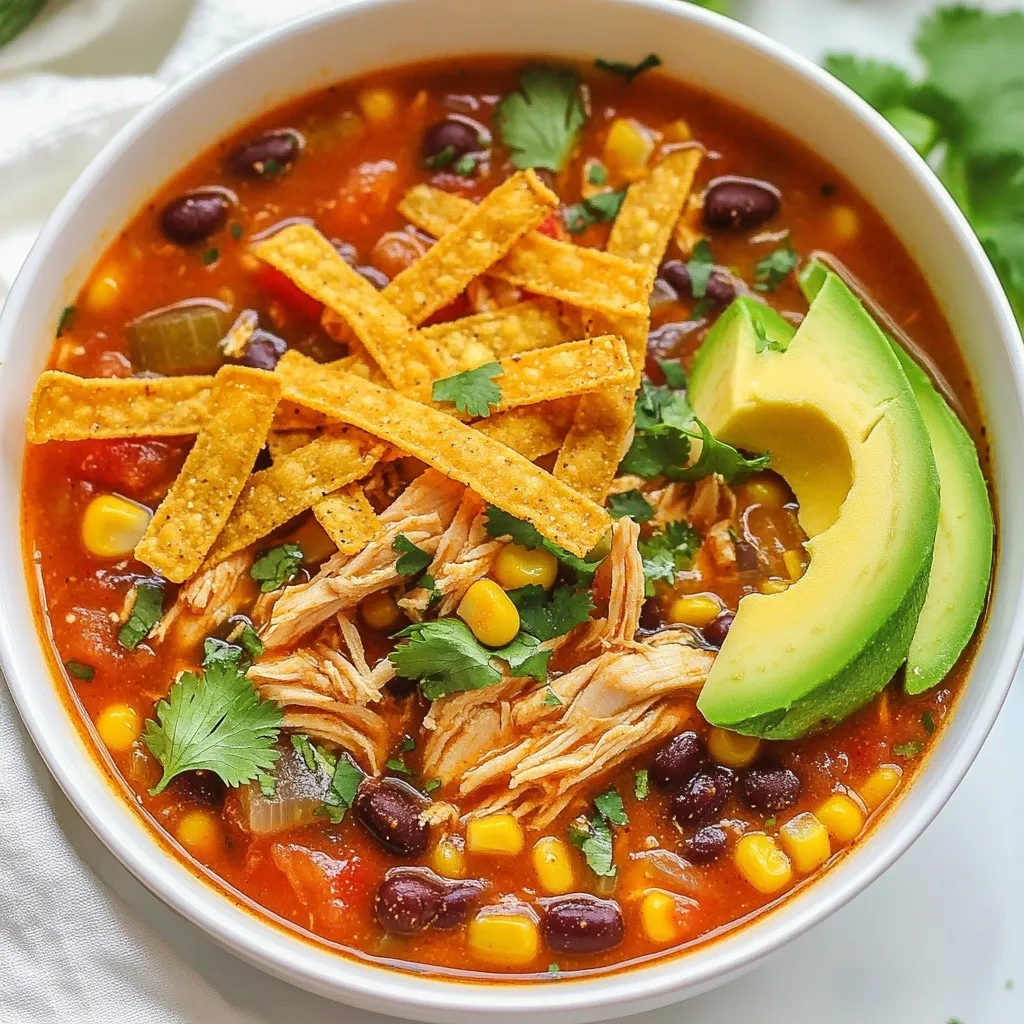 - 1.5 lbs boneless, skinless chicken breasts - 1 medium onion, diced - 3 cloves garlic, minced - 1 red bell pepper, diced - 1 can (14 oz) diced tomatoes with green chilies - 1 can (15 oz) black beans, drained and rinsed - 4 cups chicken broth - 1 cup corn (frozen or canned) - 2 teaspoons ground cumin - 1 teaspoon chili powder - 1 teaspoon smoked paprika - Salt and pepper to taste - 2 tablespoons olive oil - Fresh cilantro, for garnish - Tortilla strips, for serving - Avocado, sliced, for serving - Lime wedges, for serving This soup gets its heart from the chicken and beans. I love using boneless chicken breasts. They cook quickly and stay tender. The diced tomatoes add a nice tang, while the black beans bring protein and fiber. Next, the spices really make this dish pop. Ground cumin gives warmth. Chili powder adds a bit of heat. Smoked paprika brings a rich, smoky flavor. Together, they create a lovely base. Don’t forget the garnishes! Fresh cilantro adds brightness. Tortilla strips give great crunch. Sliced avocado adds creaminess. Lastly, lime wedges give a zesty finish. These toppings make each bowl special. This mix of ingredients makes the soup both tasty and filling. You can easily adjust the flavors to your liking. Enjoy experimenting with this tasty dish! {{ingredient_image_1}} 1. Sautéing the vegetables: Start by pressing the Sauté button on your Instant Pot. Add 2 tablespoons of olive oil. Wait until the oil is hot. Then, add 1 medium onion and 1 diced red bell pepper. Cook for about 3-4 minutes. You want them soft and fragrant. Next, stir in 3 minced garlic cloves and cook for 1 more minute. This step builds a strong base for your soup. 2. Adding chicken and spices: Place 1.5 lbs of boneless, skinless chicken breasts into the pot. Sprinkle 2 teaspoons of ground cumin, 1 teaspoon of chili powder, and 1 teaspoon of smoked paprika over the chicken. Add salt and pepper to taste. Use a spatula to mix everything well. This helps coat the chicken with spices and veggies. 3. Combining all ingredients: Now, add 1 can of diced tomatoes with green chilies, 1 can of drained black beans, 1 cup of corn, and 4 cups of chicken broth. Give everything a good stir to mix. Make sure the chicken is submerged in the broth. This ensures even cooking and rich flavor throughout the soup. To get the best flavor in your soup, use fresh ingredients. Fresh veggies and spices boost taste. For the chicken, boneless breasts work well. They cook fast and stay tender. Avoid common mistakes like overcooking the chicken. If you do, it can dry out. Also, do not skip the sauté step. This builds great flavor. Stirring the spices with the veggies helps blend the tastes. For a beautiful presentation, use colorful bowls. Ladle the soup generously into each bowl. Add crispy tortilla strips on top for crunch. Fresh cilantro adds a nice pop of green. Pair the soup with a side salad or fresh corn bread. These sides complement the soup's flavors well. Lime wedges are a must for that zingy finish. They brighten up each bite! Pro Tips Use Fresh Ingredients: Fresh vegetables and herbs elevate the flavor of your soup. If possible, use freshly chopped cilantro and ripe tomatoes for the best taste. Adjust the Spice Level: If you prefer a milder soup, reduce the amount of chili powder and choose mild diced tomatoes. You can always add hot sauce later for extra heat! Cook in Batches: If you're making a large batch, consider dividing the ingredients into two separate cooking sessions to ensure even cooking and flavor distribution. Garnish Creatively: Experiment with different toppings like shredded cheese, jalapeños, or sour cream for added flavor and a personalized touch to your soup. {{image_2}} Alternative proteins You can change the chicken for other meats. Use turkey for a lighter soup. Pork also works well; just cook it longer. If you want a meatless option, try beans or lentils. Both add protein and flavor. Substituting vegetables Feel free to switch up the veggies. Zucchini or carrots add nice texture. You can also toss in some spinach for added greens. Each choice gives a fresh taste to your soup. Adding extra spices Want more kick? Add more chili powder or cumin. A pinch of cayenne can spice things up. Consider adding oregano for a new layer of flavor. A dash of hot sauce can also make it exciting. Incorporating toppings Don't skip the toppings! Fresh cilantro adds brightness. Sliced avocado brings creaminess. You can also use cheese for richness. Tortilla strips give a crunchy finish. Lime juice adds a zesty twist. These little extras make each bowl special. To store your leftover soup, let it cool first. Pour the soup into an airtight container. Make sure to leave some space at the top. This allows the soup to expand when it freezes. You can keep it in the fridge for up to three days. When you're ready to eat, simply heat it on the stove or in the microwave. If you want to freeze the soup, follow these steps. First, cool it completely. Then, use freezer-safe bags or containers. Fill them with soup, leaving some space at the top. Seal tightly to avoid air pockets. You can freeze the soup for up to three months. To reheat, thaw overnight in the fridge. Heat it on the stove or in the microwave until hot. Yes, you can use frozen chicken. Just add a few extra minutes to the cooking time. The Instant Pot will cook it safely and evenly. This is a great way to save time if you forget to thaw the chicken. To add heat, try these options: - Add more chili powder. - Include diced jalapeños or serrano peppers. - Use hot salsa instead of diced tomatoes. You can adjust the spice level to suit your taste. Start small and add more until it’s just right for you. Absolutely! To make a vegetarian version: - Substitute chicken with cubed tofu or extra beans. - Use vegetable broth instead of chicken broth. - Keep all the veggies and spices for a flavorful dish. This way, everyone can enjoy a tasty bowl of soup! This blog post showe