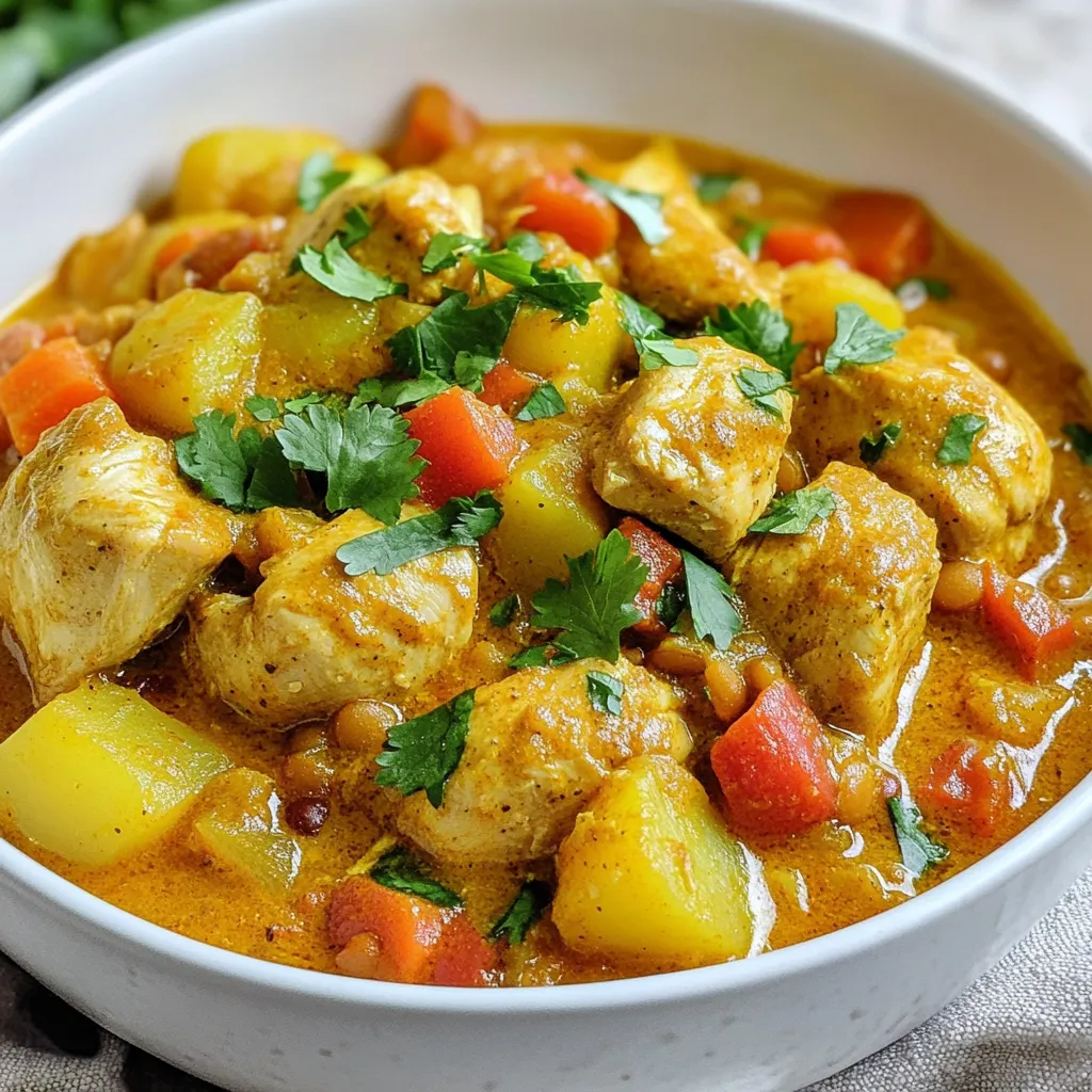 These ingredients come together to create a dish that is both hearty and comforting. Each spice adds depth, while the chicken and lentils provide protein and texture. The fresh cilantro on top gives a pop of color and freshness. Enjoy gathering these ingredients to start cooking this delightful meal!