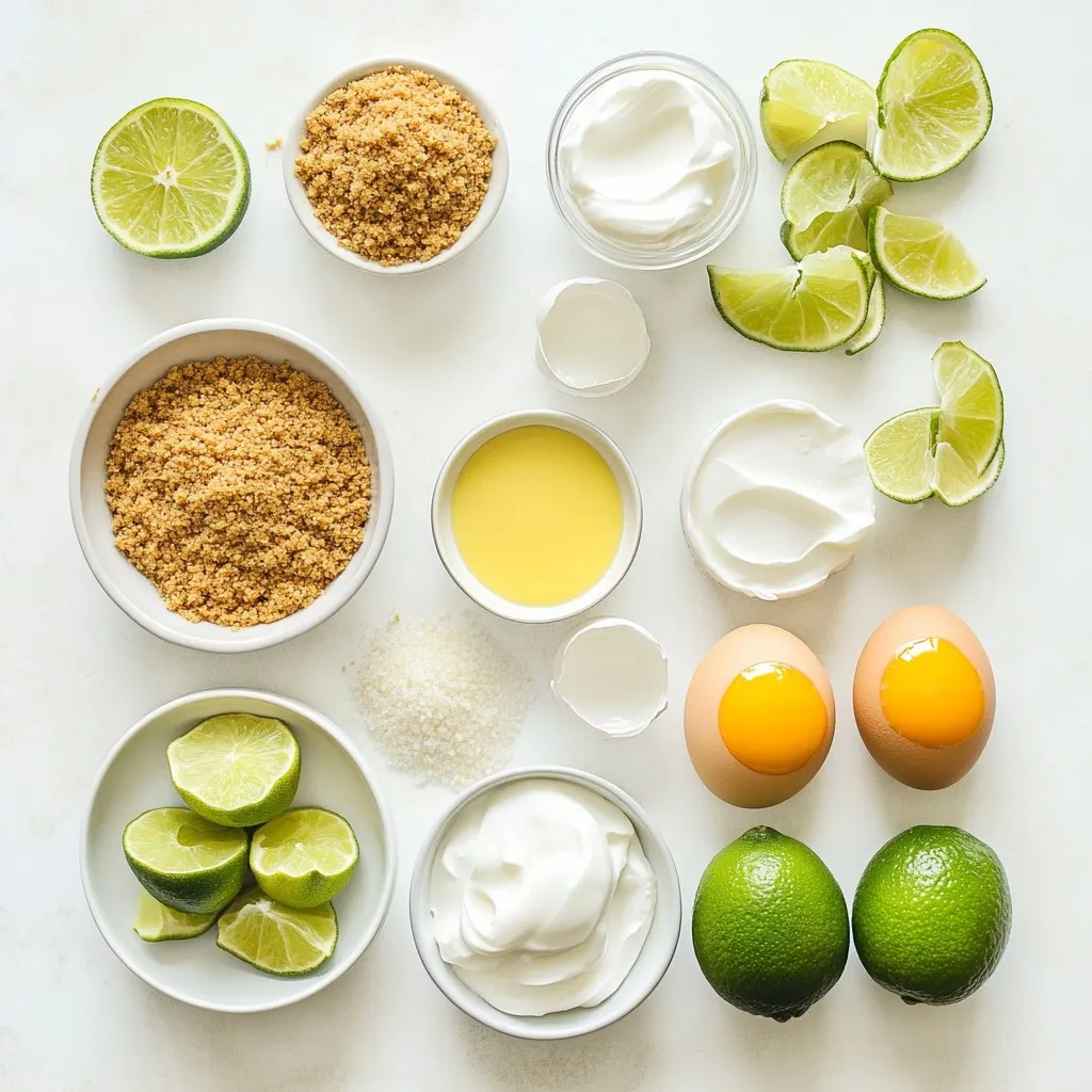 The sweetened condensed milk gives the filling creaminess. Fresh key lime juice brings zesty flavor. Egg yolks help set the filling. Lime zest enhances the taste. A pinch of salt balances the sweetness.