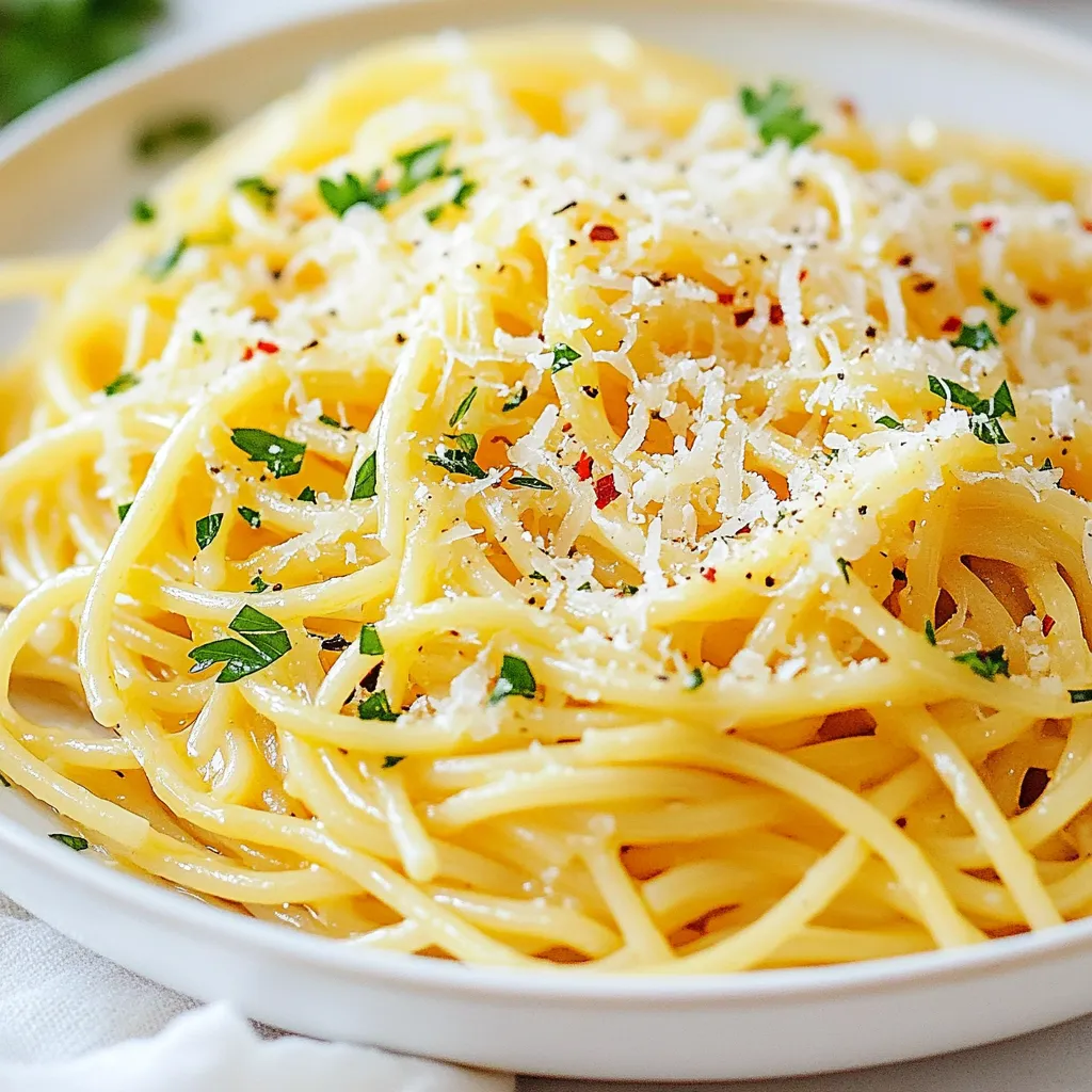 - 8 oz spaghetti or your choice of pasta - 4 tablespoons unsalted butter - 4 cloves garlic, minced - Zest and juice of 1 large lemon - 1/2 teaspoon red pepper flakes (optional) - 1/4 cup grated Parmesan cheese - Salt and black pepper to taste - Fresh parsley, chopped for garnish For this recipe, you need 8 ounces of pasta. This amount works well for 2 to 4 servings. Use a food scale or measuring cup for accuracy. You should have 4 tablespoons of butter, which adds richness. Make sure to mince 4 cloves of garlic for a strong flavor. The zest and juice from one lemon bring brightness and freshness. Red pepper flakes give a slight kick, but they are optional. You will also need 1/4 cup of grated Parmesan cheese for creaminess. Finally, use salt and black pepper to enhance the taste. Fresh parsley adds a nice touch to the dish. I suggest using spaghetti for this dish. It works great with the sauce and flavors. However, you can also try fettuccine or linguine. Both types hold the sauce well. If you prefer whole wheat or gluten-free pasta, feel free to use those options. Just be sure to adjust the cooking time as needed. {{ingredient_image_1}} First, gather your ingredients. You need: - 8 oz spaghetti or your choice of pasta - 4 tablespoons unsalted butter - 4 cloves garlic, minced - Zest and juice of 1 large lemon - 1/2 teaspoon red pepper flakes (optional) - 1/4 cup grated Parmesan cheese - Salt and black pepper to taste - Fresh parsley, chopped for garnish Next, fill a large pot with water and add salt. Bring it to a boil. While you wait, chop the garlic and parsley. Zest the lemon and then juice it. This way, you have everything ready. Once the water boils, add your pasta. Cook it according to the package until it is al dente. This usually takes about 8-10 minutes. Before draining, save one cup of pasta water. This water helps make the sauce creamy. In a large skillet, melt the butter over medium heat. After it melts, add the minced garlic. Sauté it for one to two minutes. You want it fragrant, not brown. Next, stir in the lemon zest and juice. If you like some heat, add the red pepper flakes too. Cook for another minute. Now, add the drained pasta to the skillet. Toss it in the lemon garlic butter. Gradually pour in the reserved pasta water. Mix until you have the sauce you like. Then, stir in the grated Parmesan cheese. Season with salt and black pepper. To plate, use a fork or tongs to twist the pasta onto plates. This gives it a nice shape. Sprinkle extra grated Parmesan on top for a cheesy finish. Finally, add the chopped parsley for color and freshness. Serve right away. Enjoy your lemon butter garlic pasta! When cooking pasta, always use a large pot. Fill it with water to allow the pasta to move freely. Bring the water to a rolling boil before adding salt. The salt enhances the flavor of the pasta. Cook the pasta until it is al dente, which means firm to the bite. This helps it hold its shape and texture. Remember to reserve some pasta water before draining. This water is starchy and helps the sauce cling to the pasta. To boost flavor, use fresh garlic instead of dried. Fresh garlic gives a stronger taste. You can also try adding lemon zest before cooking. This adds a bright note that pairs well with the butter. If you like heat, sprinkle in red pepper flakes. They give a nice kick. Finally, fresh parsley adds color and freshness. Toss it in right before serving for the best effect. One common mistake is overcooking the pasta. This makes it mushy and less enjoyable. Another mistake is not adding enough salt to the water. Pasta needs salt to taste good. Also, don’t forget to mix the pasta with the sauce well. If you simply place sauce on top, it does not coat evenly. Lastly, avoid letting the pasta sit too long before serving. It can dry out or stick together. Pro Tips Use Fresh Ingredients: Fresh garlic and lemon zest will enhance the flavor of your pasta significantly compared to dried alternatives. Adjust the Heat: If you prefer a milder dish, reduce or omit the red pepper flakes. For more heat, add more according to your taste. Reserve Pasta Water: Always reserve some pasta cooking water. It helps to adjust the sauce's consistency and makes it cling better to the pasta. Garnish for Freshness: Fresh parsley adds a pop of color and a fresh flavor. Don’t skip this step for a beautiful presentation! {{image_2}} You can add protein to your Lemon Butter Garlic Pasta for extra flavor and nutrition. Chicken works great. Cook it in the skillet before adding garlic. Slice it thin after cooking for easy mixing. Shrimp is another good choice. Sauté the shrimp until pink and tender. Both options make the dish heartier. If you prefer a vegetarian dish, skip the meat but keep the flavor. You can add veggies like spinach or cherry tomatoes. Toss them in the skillet with the garlic. They will cook quickly and add color. You can also use chickpeas for protein. They mix well and add a nice texture. Use seasonal ingredients to change up the dish. In spring, try fresh asparagus or peas. In summer, add zucchini or bell peppers. Fall brings great options like butternut squash. These swaps keep each meal fresh and exciting. You’ll enjoy the burst of flavors with every season. Store any leftover Lemon Butter Garlic Pasta in an airtight container. Let the pasta cool first. Place it in the fridge for up to three days. You can freeze the pasta if you want to keep it longer. Place the cooled pasta in a freezer-safe bag. Remove as much air as possible. It can stay good for up to three months. To reheat, you can use a microwave or a skillet. If using a microwave, add a splash of water. Heat in short bursts to avoid drying it out. If using a skillet, add a little butter over low heat. Stir gently until warmed through. You can use Pecorino Romano cheese. It has a salty taste and good texture. Nutritional yeast also works well for a dairy-free option. It adds a cheesy flavor without the cheese. Yes, you c