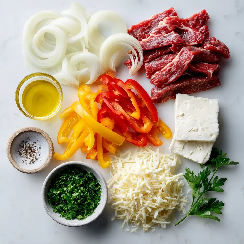 Main ingredients for Low Carb Philly Cheesesteak Casserole