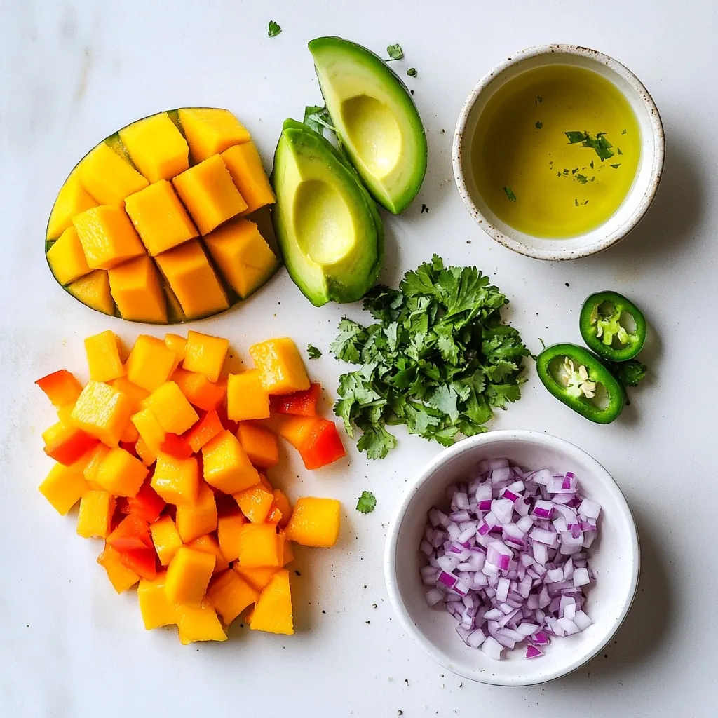 Each ingredient adds a unique flavor. The ripe mango brings sweetness and a tropical vibe. The avocados add creaminess and richness. The red bell pepper adds crunch and color. The red onion gives a sharp taste, while the jalapeño can spice things up if you like heat. Fresh lime juice keeps everything bright, and cilantro adds freshness.