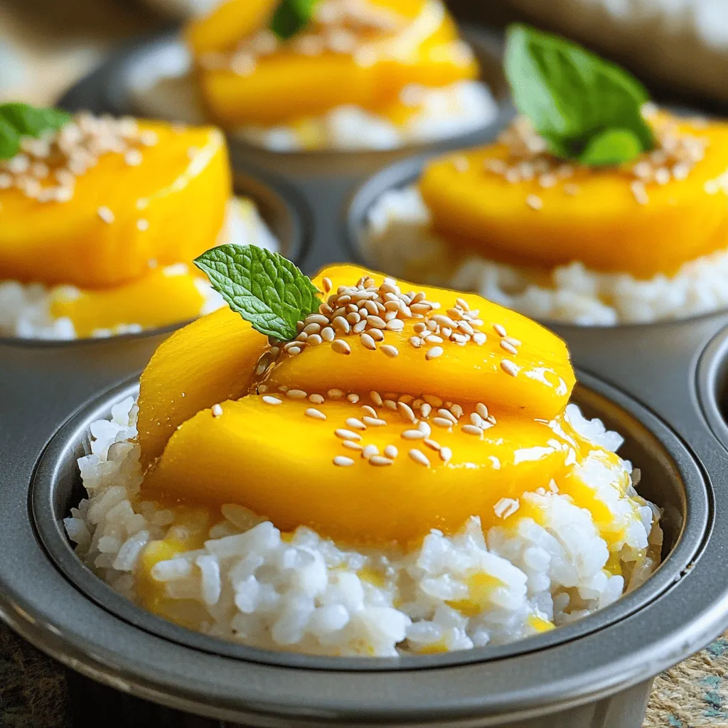 Creative serving suggestions can make your dish shine. Use a muffin tin or small cups for fun shapes. You can layer the rice and mango in a clear glass for a colorful look. Top each cup with toasted sesame seeds or shredded coconut for crunch. Fresh mint leaves add a pop of color and freshness. These small details make your treat look even more delightful!