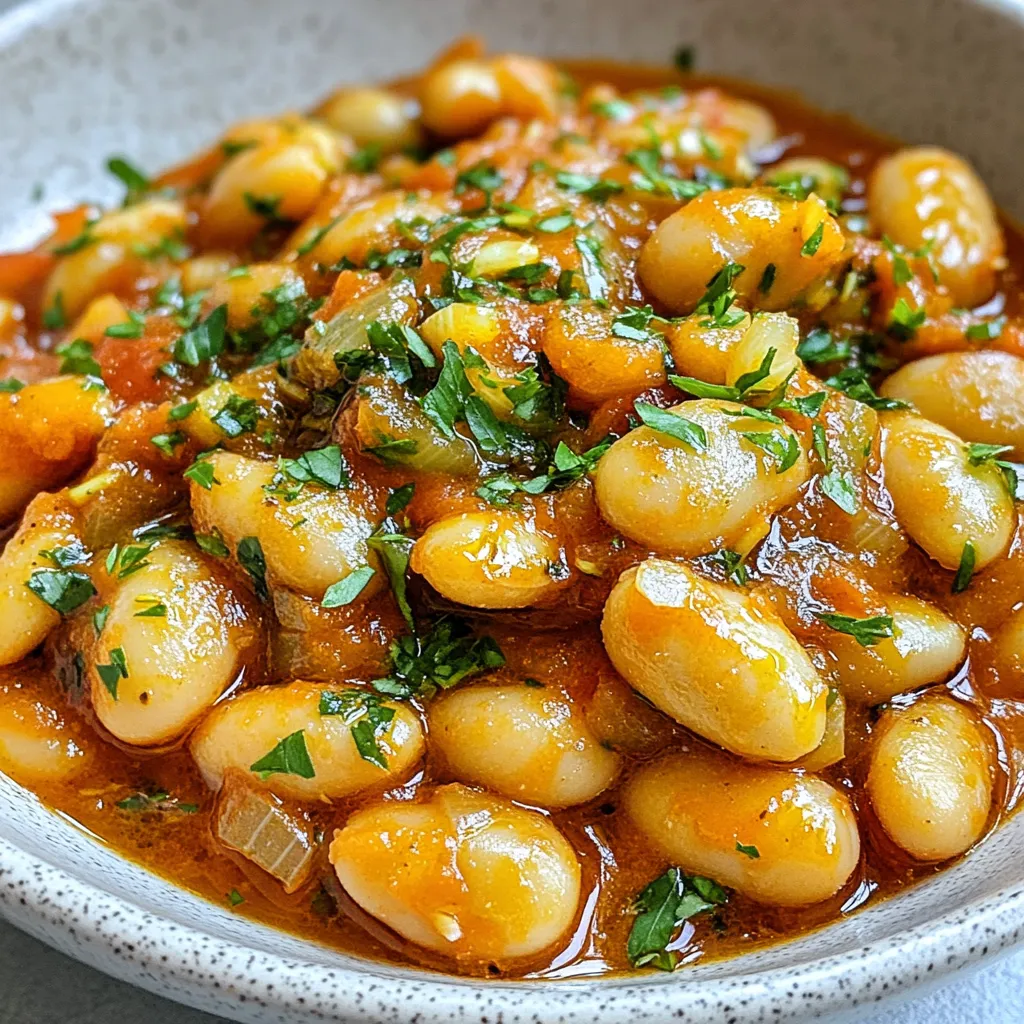 A hearty and flavorful dish featuring butter beans cooked in a savory tomato and spice broth.