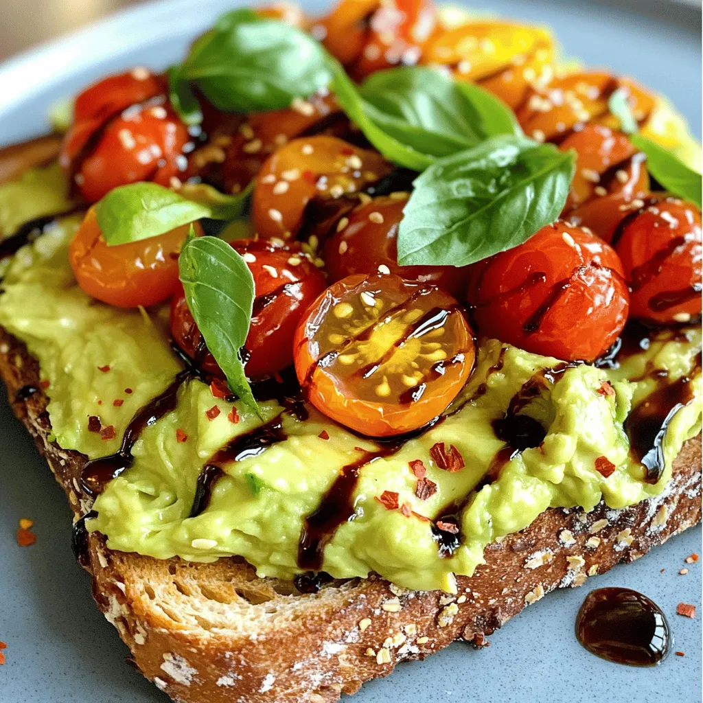 For the best avocado toast, start with ripe avocados. They should give slightly when you press them. Use whole-grain bread for a healthy base. It adds fiber and flavor. Cherry tomatoes bring a sweet and juicy bite. Balsamic vinegar adds a tangy kick.