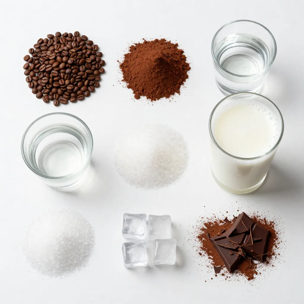 Next, you will need milk. You can choose dairy or any non-dairy option you like, such as almond or oat milk. This choice makes your drink creamy. If you want a cold version, add ice cubes. For a special touch, sprinkle cocoa powder or chocolate shavings on top.
