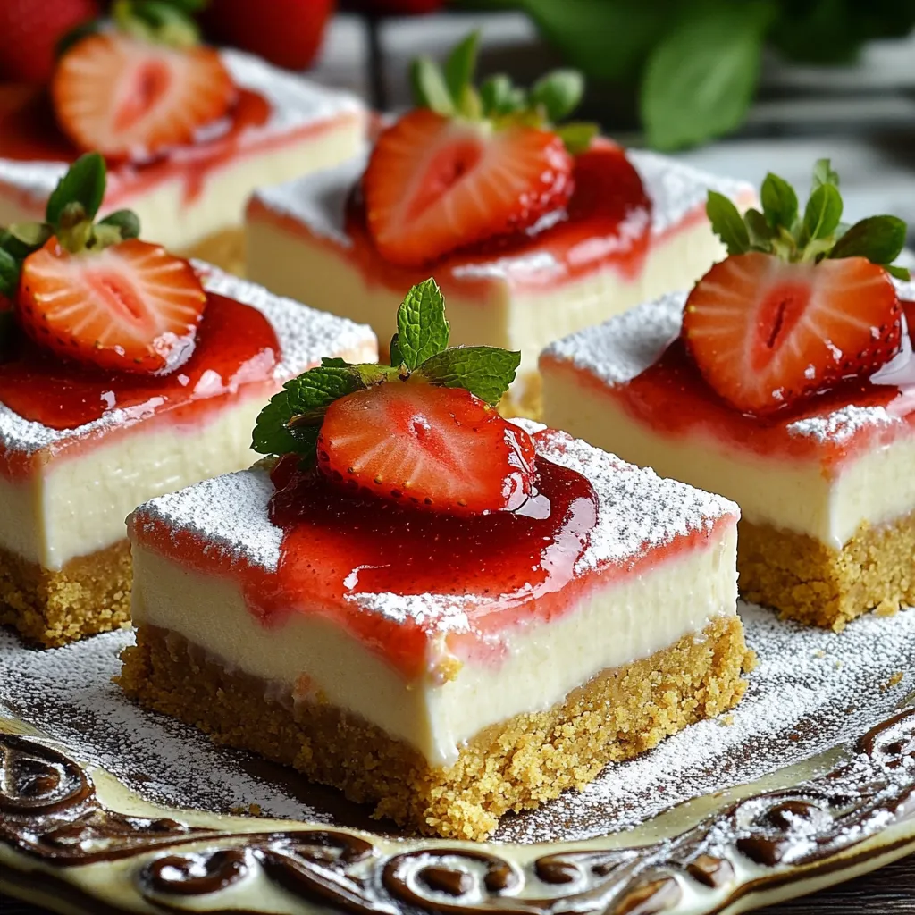 For a beautiful display, serve the bars on a nice platter. You can add more fresh strawberries or mint leaves for color. A dusting of powdered sugar gives a lovely touch. Cut the bars into neat squares for easy serving. This makes them perfect for any gathering or party.