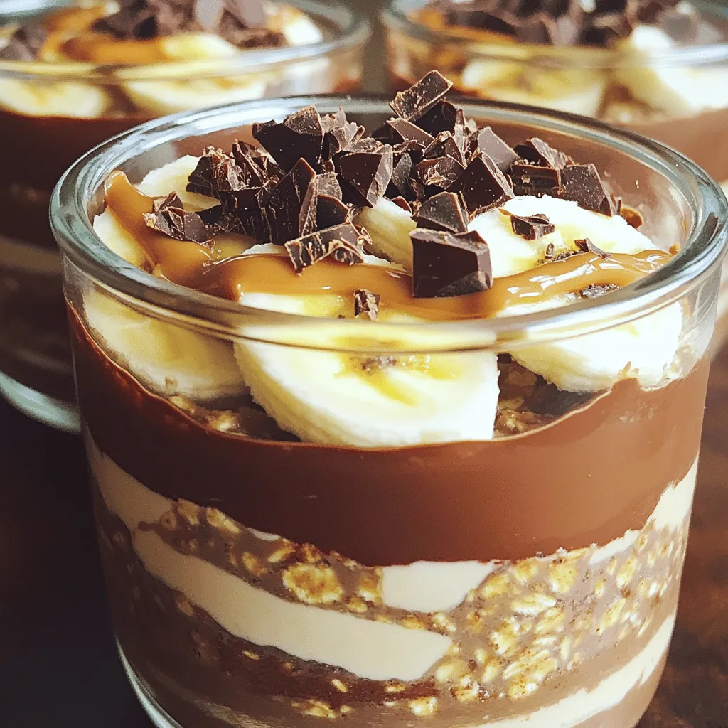Serve your overnight oats in clear jars. This shows off the lovely layers. You can also drizzle a bit of peanut butter on top. Add chocolate shavings or chips for that extra flair. Fresh banana slices on top also add color and taste.