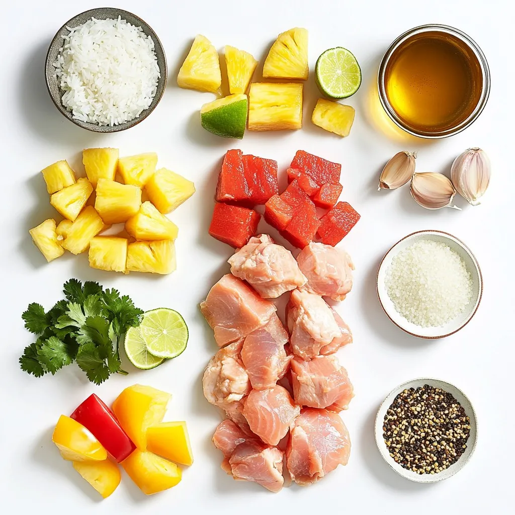 A delicious and vibrant dish featuring chicken, fresh pineapple, and colorful vegetables, perfect for a tropical meal.