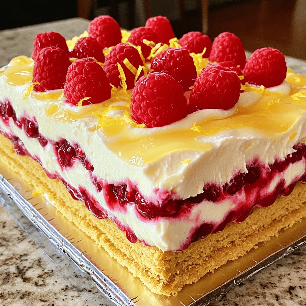 Each ingredient plays a key role. The fresh raspberries add a sweet and tangy burst. Lemon curd brings a bright, zesty flavor. Heavy whipping cream gives the cake a rich and creamy texture. Powdered sugar sweetens the mixture without adding graininess. Vanilla extract enhances the overall taste. Lemon-flavored graham crackers provide a crunchy base. Finally, lemon zest adds a refreshing finish.