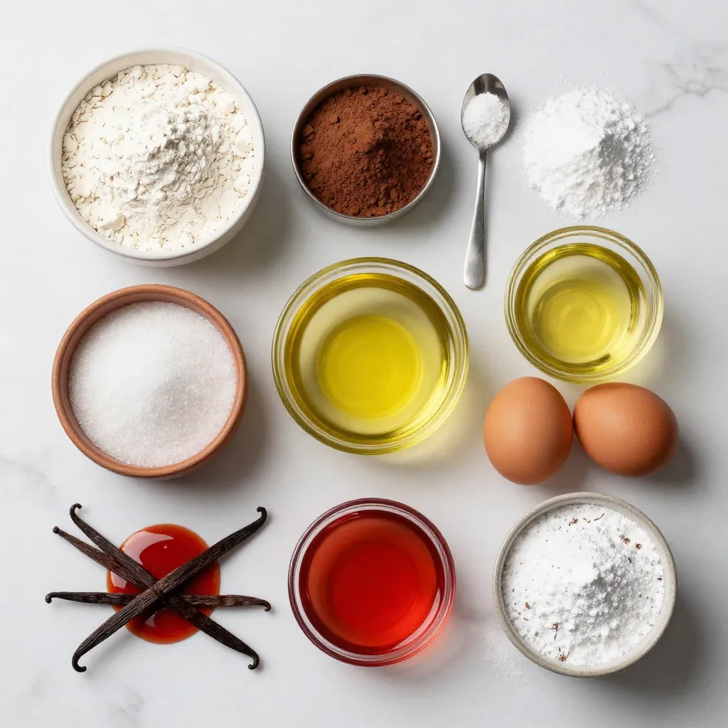 In a medium bowl, mix the flour, cocoa powder, baking powder, baking soda, and salt. Whisk well and set it aside. In a large bowl, combine the granulated sugar and vegetable oil. Whisk them together until they blend well. Add the eggs, red food coloring, and vanilla extract. Whisk again until the mix turns smooth and bright red.